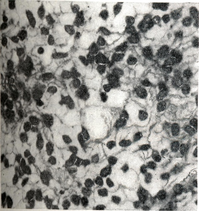 В соответствии с типом преобладающих в опухоли клеточных элементов выделяют (под близкими у разных авторов наименованиями) варианты астроцитом по следующим признакам: 1) по наличию анаплазии — недифференцированную (анапластическую, атипическую, гетеротипическую, злокачественную, малигнизированную) и дифференцированную (типическую, гомотипическую, доброкачественную); 2) по содержанию глиальных волокон — фибриллярную, протоплазматическую (плазматическую), смешанную (фибриллярно-прото-плазматическую, рис. 2); 3) по величине клеток — мелкоклеточную, крупноклеточную (к этой группе относят обычно и астроцитомы из тучных астроцитов — тучноклеточную, рис. 3); 4) по фодме клеток — из звездчатых клеток, веретеноклеточную (с ее подвариантом пилоидной — волосовидной — астроцитомы, рис. 4) и полиморфно-клеточную.