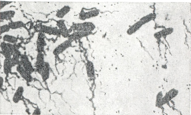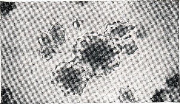 Возбудители Б. типа Е, а также непротеолитические штаммы типа В и нек-рые штаммы типа F образуют на питательных средах и, возможно, в пищевых продуктах недостаточно активный предшественник токсина — протоксин, к-рый значительно усиливает свою биологическую активность при попадании в жел.-киш. тракт человека и животных в результате воздействия протеолитических ферментов. При добавлении трипсина, панкреатина in vitro также происходит активация протоксина, к-рый переходит в токсин. По морфологии возбудители Б.— небольшие палочки длиной 4—9 мкм и шириной 0,6—0,9 мкм с закруглёнными концами (рис. 1). Палочки образуют субтерминальные или терминальные споры и имеют вид теннисной ракетки (рис. 2 и 3). Эти микробы легко окрашиваются различными анилиновыми красками. Молодые клетки окрашиваются по Граму положительно. Через 4—5 сут. роста палочки окрашиваются грамотрицательно. Микробы подвижны, имеют от 4 до 35 жгутиков (рис. 4), капсулы не образуют. В посевах в высокий столбик агара микробы образуют колонии, имеющие форму чечевицы (рис. 5) и комочков ваты (рис. 6). При посеве на поверхность кровяного, печёночного или сахарного агара вырастают прозрачные колонии величиной в несколько миллиметров с ровными (рис. 7) или изрезанными (рис. 8) краями и блестящей поверхностью. На кровяном агаре колонии окружены зоной гемолиза (рис. 9). Оптимальной температурой для роста бактерий типов А, В, С, D является 34—35°, для типов Е и F — температура 26—30°. См. также Clostridium.