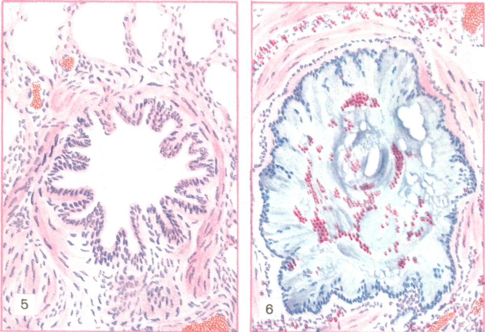 При перкуссии отмечается высокий коробочный звук с нек-рым укорочением в паравертебральных отделах; аускультативно дыхание ослабленное, сухие свистящие хрипы на выдохе; у детей раннего возраста нередко прослушиваются и влажные средне- и мелкопузырчатые хрипы в фазе вдоха. Пульс частый, на высоте приступа удушья во время вдоха наполнение пульса уменьшается, что может производить впечатление аритмии. Артериальное давление определяется в пределах верхней границы нормы; сердце расположено срединно, границы его определяются с трудом из-за эмфиземы лёгких; тоны сердца резко приглушены. Печень выступает из подреберья на 2 — 4 см. На ЭКГ определяется тахикардия, отклонение электрической оси сердца вправо, высокий зубец Р во II — III отведениях, сниженные зубцы Т, признаки повышения давления в системе лёгочной артерии и нарушения восстановительных процессов миокарда. Тяжёлое состояние, обусловленное приступом удушья, под влиянием лечения постепенно улучшается: дыхание становится более свободным, мокрота отделяется легче. В после приступном периоде в течение нескольких дней или недель происходит обратное развитие изменений в органах дыхания и кровообращения, возникших вследствие приступа. Нередко на фоне органических изменений в лёгких (хрон. пневмония) у детей наблюдается развитие астматического состояния. Из осложнений приступа Б. а. следует отметить ателектазы лёгких, пневмонию, значительно реже интерстициальную и подкожную эмфизему, спонтанный пневмоторакс. При длительном и тяжёлом течении Б. а. в сочетании с хрон. бронхо-лёгочным процессом возможно развитие хрон. лёгочного сердца. Смертельный исход может наступить от асфиксии во время приступа удушья, реже — вследствие анафилактического шока, гипофункции надпочечников. Диагноз ставится на основании анамнеза, клинико-лабораторных и рентгенологических данных, а также результатов кожных аллергических проб. Б. а. у детей необходимо дифференцировать с бронхиолитом, пневмонией, протекающей с астмоидным синдромом, врожденными энзимопатиями (муковисцидоз, дефицит α1-антитрипсина и др.), инородными телами, аномалиями развития и опухолями дыхательных путей; затруднённое дыхание у детей может также возникать ввиду сдавления трахеи и бронхов увеличенными лимф, узлами и вилочковой железой. ПрогнозСвоевременно начатое комплексное, систематически проводимое этапное лечение (стационар— санаторий — поликлиника — лесная школа) у большинства детей приводит к улучшению состояния и прекращению приступов удушья. У нек-рых больных, однако, улучшения состояния не наблюдается. ЛечениеДля купирования приступа Б. а. у детей применяют те же средства, что и у взрослых (в соответствующих дозах). Особое внимание следует обратить на лёгкие приступы и приступы средней тяжести, чтобы не допустить их перехода в тяжёлые, угрожающие жизни. Для этого при появлении первых симптомов приступа применяют бронхолитические средства в форме порошков, таблеток, суппозиториев или ингаляций; рекомендуется поставить банки, сделать ножную и ручную горячую ванну, закапать в нос 3% раствор эфедрина гидрохлорида. Необходимо успокоить ребёнка, отвлечь его внимание игрушками, книгами, обеспечить хороший доступ свежего воздуха. В более тяжёлых случаях переходят на подкожные инъекции растворов адреналина (0,