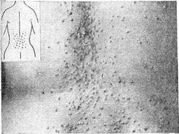 Патогистология: не очень чётко отграниченные дермогиподермальные фибромы, обычно без эластических волокон; под нижней границей эпидермиса сохраняется полоска нормальной соединительной ткани.