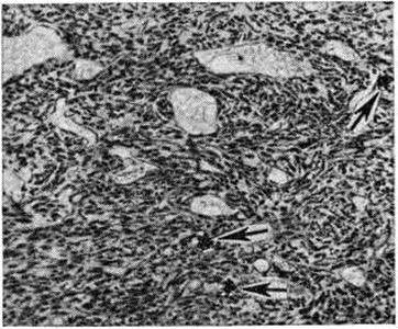 Термин «гемангиоперицитома» предложен Стаутом и Марри А. P. Stout, М. R. Murray). Существует мнение, что Гемангиоперицитома гистогенетически связана с хеморецепторным аппаратом, то есть относится к нейроэктодермальным опухолям типа параганглием (смотри). Различают дифференцированную и недифференцированную Гемангиоперицитома.