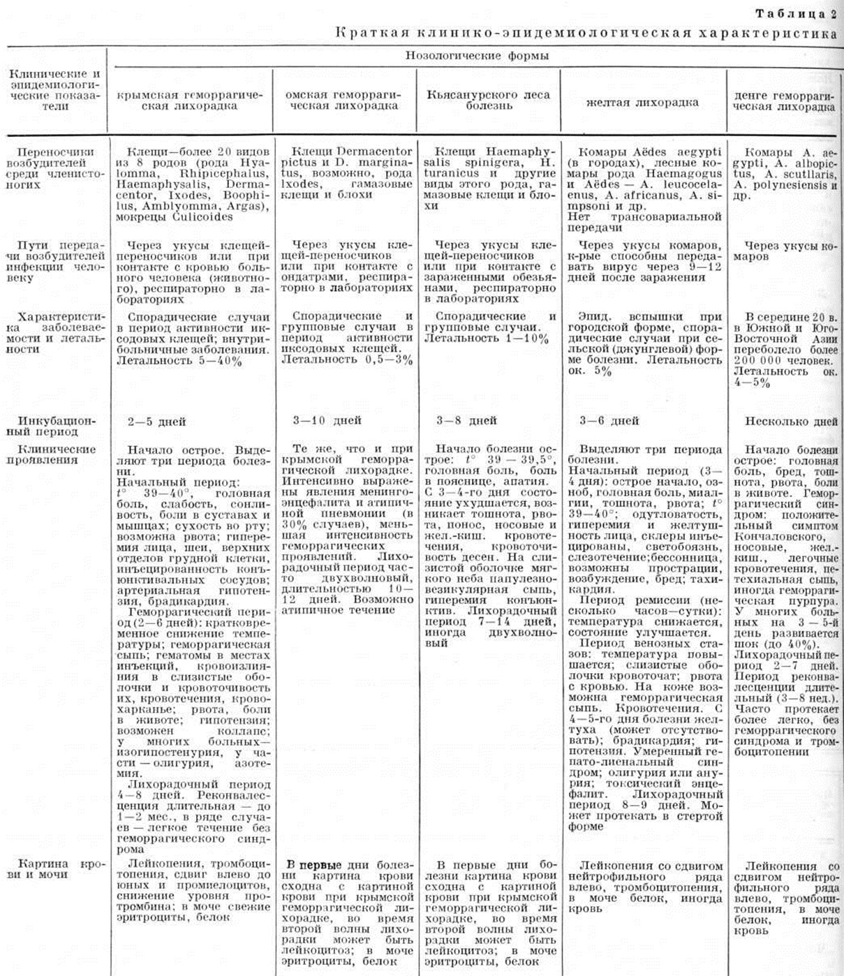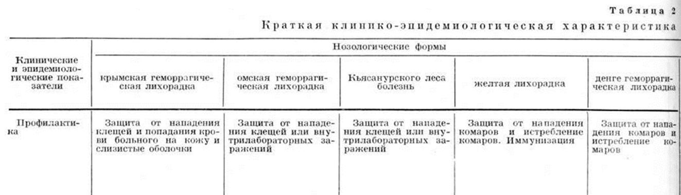 Из клещевых Геморрагические лихорадки человека особое внимание привлекает крымская геморрагическая лихорадка (смотри), широко распространённая в СССР и в ряде стран Европы, Азии и Африки. Из других клещевых Геморрагические лихорадки — омская геморрагическая лихорадка (смотри) и в Индии Кьясанурского леса болезнь (смотри), распространённые в сравнительно узких эндемических зонах; они имеют определённое сходство по клин, картине, но отличаются друг от друга по этиологии и эпидемиологии.