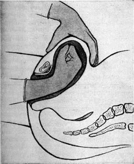Лечение Гипотонические кровотечения должно быть направлено на быстрейшее восстановление нормальной моторной функции матки. При Гипотонические кровотечения, связанном с задержкой в полости матки частей плодного яйца, показано срочное удаление их рукой или с помощью большой тупой кюретки (смотри полный свод знаний Выскабливание, матки). Если патологическое кровотечение возникло в последовом периоде (кровопотеря 400 миллилитров и более), надо немедленно приступить к выжиманию плаценты, а при безуспешности — к ручному отделению и её удалению вместе с оболочками. Не следует применять в последовом периоде многократно методики наружного выжимания плаценты, так как они не гарантируют её удаления, а в то же время ухудшают сократительную функцию матки и увеличивают кровопотерю. Отделение и выделение плаценты в большинстве случаев приводит к восстановлению сокращений матки и остановке кровотечения, так как её удаление устраняет блокирующее влияние на моторную функцию матки плацентарного прогестерона. Рука, введённая в матку, не должна извлекаться сразу после удаления плаценты. Необходимо убедиться в восстановлении нормальных сокращений миометрия матки. При наличии гипотонии проводится массаж матки на кулаке (рисунок 1). Для этого матка смещается кулаком введённой руки кпереди, а второй рукой производят лёгкие её поглаживания через покровы передней брюшной стенки. Массаж должен проводиться бережно. Грубое механическое раздражение матки может привести к её травме и появлению обширных крупноочаговых кровоизлияний, которые резко ухудшат её и так нарушенную сократительную функцию. Одновременно с этим для стимуляции сокращения матки показано введение окситоцина или питуитрина (5—10 ЕД подкожно или непосредственно в миометрий). Хороший эффект оказывают эрготамин, эргометрин, эрготал и другие Передозировка указанных препаратов может вызвать парадоксальную реакцию миометрия матки, то есть ещё больше ухудшить её сократительную функцию. Иногда хороший эффект — усиление сократительной функции матки — наблюдается после помещения на низ живота пузыря со льдом. Рефлекторное сокращение матки при Гипотонические кровотечения можно также вызвать раздражением рецепторных полей шейки матки. Для этого в задний свод влагалища вводится на корнцанге тампон, смоченный эфиром. В комплексе с другими мероприятиями иногда хороший эффект оказывает поперечный шов на шейку матки по Лосицкой. Для этой цели используют толстый кетгут. Шов снимается через 12—20 часов. Предложены также различные методы электростимуляции матки. М. И. Медведева использовала для целей стимуляции переменный ток напряжением 5—10 вольт, а З. А. Чиладзе — разряд постоянного тока напряжением 4000 вольт. При продолжающемся кровотечении показано применение метода Бакшеева, при котором с помощью окончатых щипцов (3—4 с каждой стороны) производится клеммирование боковых отделов матки. Одна бранша зажима вводится в полость матки, а другая в боковой свод на область сосудистого пучка (рисунок 2). При сдавлении сосудов уменьшается, а иногда полностью прекращается Кровотечение. Хороший эффект достигается и при сдавлении маточных сосудов зажимами, наложенными на область параметрия через боковые своды влагалища (метод Генкеля — Тиканадзе). И. Е. Тиканадзе предложил заменить щи