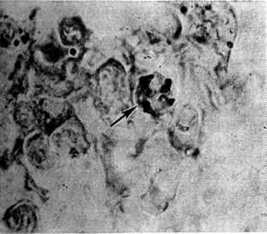Гистоплазмоз не контагиозен, передачи от человека человеку и от животных человеку не наблюдается. Болеют чаще сельские жители, земледельцы, рабочие птицеферм, трактористы, шахтёры, строители дорог, геологи и другие, а также спелеологи, туристы, посещающие пещеры, населённые летучими мышами. В распространении болезни играют роль тип почвы, ветры, песчаные бури. Наиболее крупные очаги Гистоплазмоз находятся в долинах рек. Патогенез определяется свойством гистоплазмы избирательно поражать ретикулоэндотелиальную систему и размножаться внутри клеток, вызывая их разрушение, что при гематогенном распространении обусловливает образование очагов некроза в различных органах и тканях. Большое значение, особенно в патогенезе диссеминированного Гистоплазмоз, имеют иммунологический реактивность, сопутствующие болезни (туберкулёз, диабет, болезни крови, ретикулоэндотелиальной системы). Имеют значение пол и возраст: мужчины болеют вдвое чаще женщин, дети вдвое чаще взрослых. У детей, по данным некоторых авторов, возможно первичное поражение желудочно-кишечного тракта, что, однако, оспаривается другими исследователями. Гистоплазмоз нередко сочетается с другими болезнями ретикулоэндотелиальной системы — саркоидозом (смотри полный свод знаний), лейкозами (смотри полный свод знаний), ретикулезами (смотри полный свод знаний) и другие и с туберкулёзом (смотри полный свод знаний). Патологическая анатомияГистоплазмоз имеет морфологически сходство с туберкулёзом; при Гистоплазмоз наблюдаются все формы воспалительной реакции тканей, вплоть до некроза, фиброза и кальцинации, в зависимости от локализации очага, массивности инфекции, реактивности организма. Первичный аффект в лёгком имеет вид плотного очага размером 2×3 сантиметров, треугольной формы. На разрезе видны мелкие серовато-белые узелки с обызвествлением в центре, расположенные перибронхиально. Первичный лёгочный комплекс (смотри полный свод знаний Первичный комплекс) сопровождается поражением прикорневых лимф, узлов, где образуются такие же узелки. При массивной инфекции преобладает экссудативная реакция. В тяжёлых случаях, при вторичном, диссеминированном Гистоплазмоз лёгких, в центре пневмонических очагов развивается казеозный некроз (смотри полный свод знаний), в регионарных лимф, узлах — эпителиоидные бугорки с некрозом в центре. Нередко встречается сочетание пневмонических очагов (смотри полный свод знаний Пневмония), экссудативного плеврита (смотри полный свод знаний) и каверны (смотри полный свод знаний). Лимфогенно-гематогенная диссеминация гистоплазмы часто наступает уже при формировании первичного лёгочного комплекса, такие же гранулематозные очаги развиваются в других внутренних органах, коже, слизистых оболочках. Исходом очагов Гистоплазмоз в лёгких и других органах является их обызвествление, которое выражено более интенсивно, чем при туберкулёзе. Гистологически наблюдают три типа поражений: 1) наличие гистиоцитов с дрожжевидными клетками гистоплазмы внутри (без реакции окружающей ткани); 2) некротические изменения вокруг гиперплазированных ретикулоэндотелиальных клеток в селезёнке (рисунок 3), печени, лимф, узлах, костном мозге с элементами гистоплазмы внутри; 3) преимущественное поражение тканей в виде гранулём, состоящих из эпителиоидных кл