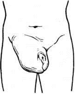 Для сальника типичны дольчатость, плотность, тупой звук при перкуссии. Приращение его к грыжевому мешку создаёт болевые ощущения при выпрямленном положении больного (симптом натянутой струны). При Грыжи мочевого пузыря часто страдает мочеиспускание, оно может происходить в два приёма, задерживаться, иногда больной при мочеиспускании принимает вынужденное положение тела. Размер Грыжи изменяется по мере накопления мочи в пузыре, Распознавание паховой Грыжи обычно не представляет затруднений. Припухлость выше паховой связки, увеличивающаяся при натуживании и кашле, указывает на паховую Грыжи Особенно легко распознается паховомошоночная Грыжи. Начальные стадии паховой Грыжи диагностируются труднее, в этих случаях помогает симптом кашлевого толчка. В неясных случаях рекомендуются повторные и вечерние осмотры. Косая грыжа повторяет тот путь, который проделало яичко вместе с влагалищным отростком брюшины. Если он не облитерируется, то содержимое Грыжи лежит вместе с яичком, и такая Грыжи называется врождённой яичковой Грыжи; по А. П. Крымову (1911), она наблюдается в 3% случаев. А. П. Крымов, Н. В. Воскресенский и другие считают, что в косой паховой Грыжи грыжевой мешок всегда является влагалищным отростком брюшины, однако большинство хирургов различает и приобретённую паховую Грыжи, при которой грыжевой мешок совершенно отделен от влагалищного отростка брюшины и яичка. В косой Грыжи мешок располагается всегда в толще семенного канатика (смотри полный свод знаний), находясь под fascia spermatica. По отношению к элементам семенного канатика грыжевой мешок лежит кнаружи и кпереди от сосудов и семявыносящего протока (смотри полный свод знаний), но нередко элементы семенного канатика облегают грыжевой мешок со всех сторон. В развитии косой паховой Грыжи различают несколько стадий. Вначале выпячивание ощущается лишь введённым в паховый канал пальцем при натуживании или при покашливании больного (симптом кашлевого толчка). Это начальная форма Грыжи. Если дно грыжевого мешка не выходит за пределы поверхностного пахового кольца, говорят о канальной, или неполной, Грыжи Когда же грыжевое выпячивание, располагаясь по ходу канатика, выходит за пределы поверхностного пахового кольца, говорят о полной, или канатиковой, Грыжи Наконец, если грыжевое выпячивание спускается в мошонку и растягивает её иногда до огромных размеров (рисунок 6), говорят о пахово-мошоночной Грыжи Косое направление пахового канала характерно для первых стадий развития косой паховой Грыжи; при Грыжи больших размеров паховый канал постепенно принимает прямую форму и поверхностное паховое кольцо находится почти на одном уровне с глубоким. У таких больных через грыжевые ворота можно ввести несколько пальцев. Б. Э. Линберг (1926) называет такую Грыжи косой с выпрямленным каналом, а Ойдтманн (Oidtmann) — наружной прямой паховой Грыжи. Чтобы найти грыжевой мешок при косой паховой Грыжи, хирург должен рассечь следующие ткани: 1) кожу с подкожной клетчаткой; 2) поверхностную фасцию; 3) апоневроз наружной косой мышцы, а ниже поверхностного пахового кольца — fascia cremasterica; 4) m. cremaster и внутреннюю семенную фасцию, под которой и находится грыжевой мешок. Эта оболочка и грыжевой мешок связаны тонким слоем клетчатки, являющейся продолжением подбрюшинной клетчатки живота, который иногда почти