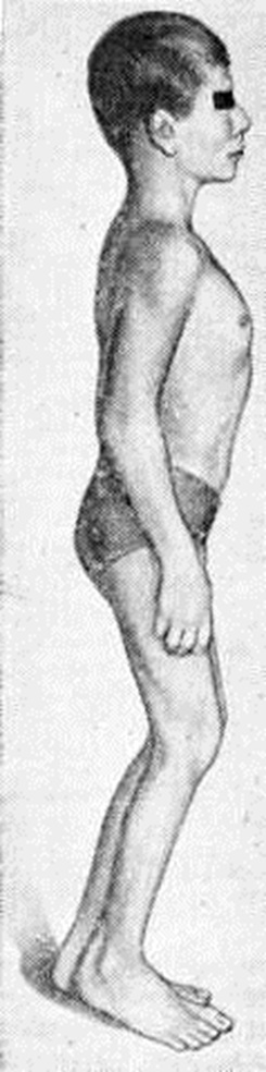 Прогноз в отношении функции конечности неблагоприятный из-за раннего развития артрозов. После оперативного вмешательства возможны рецидивы. Спондилоэпифизарная дисплазия — порок развития, в основе которого лежит дисплазия хрящевой ткани, характеризующаяся недостаточностью развития суставного хряща. Признаки заболевания появляются по мере роста ребёнка; новорожденные клинически здоровы. В тяжёлых случаях уже на первом году жизни отмечается ограничение отведения бёдер. Позже присоединяются хромота, утиная походка, утомляемость при ходьбе, ограничение движений в тазобедренных, коленных суставах, позже — в голеностопных. К 7 годам в связи с углублением вертлужных впадин заметно сужается поперечный диаметр входа в малый таз. В последующем резко увеличивается поясничный лордоз, наблюдаются выраженные сгибательные контрактуры в суставах ног (рисунок 2, 3, а). Примерно у половины больных отмечается вывих надколенника с развитием genu valgum (смотри полный свод знаний: Коленный сустав, заболевания). Несмотря на перечисленные изменения скелета, рост детей остаётся в пределах нормы, сложение — относительно пропорциональным. Нередко наблюдаются изменения, связанные с нарушениями регуляции мышечного тонуса (смотри полный свод знаний), поражением мышечной ткани (кардиопатией, появлением паховых, пупочных грыж, расхождением прямых мышц живота), увеличением печени, селезёнки, миопией, астигматизмом, дистрофией хрусталика, стекловидного тела и роговицы. Рентгенологически выявляют характерные изменения тел позвонков: они уплощены (универсальная платиспондилия), больше в грудном отделе, замыкающие пластинки неровные. Переднезадний и боковой размеры тел позвонков нормальные; этот признак является решающим в диагностике заболевания. Определяются также уплощение эпифизов всех длинных трубчатых костей, сглаженность межмыщелкового возвышения большеберцовой кости, углубление межмыщелковой ямки бедренной кости; характерен дольчатый надколенник (смотри полный свод знаний: Надколенник, патология). Лечение преимущественно консервативное — лечебный физкультура, массаж, санитарно-курортный лечение. Взрослым больным необходимо подбирать специальность, не связанную с длительным стоянием, передвижением или тяжёлыми нагрузками на опорно-двигательный аппарат. При сгибательных контрактурах в коленных суставах производят операцию перемещения надколенника (смотри полный свод знаний: Надколенник, повреждения), в ряде случаев в сочетании с надмыщелковой остеотомией (смотри полный свод знаний) бедренных костей.