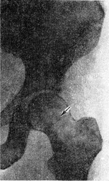 В распознавании хондросаркомы важная роль принадлежит рентгенологическое исследованию — данным рентгенографии (смотри полный свод знаний), томографии (смотри полный свод знаний) и ангиографии (смотри полный свод знаний). Важным рентгенологическое признаком хондросаркомы является нарастание имеющихся или возникновение новых патологический изменений при повторных рентгенологическое исследованиях. Преимущественно внутрикостная хондросаркома характеризуется деструкцией костной ткани, зона которой занимает большую часть или весь костномозговой канал поражённой кости (рисунок 1). Опухоль имеет нечёткие границы, что особенно заметно в области костномозгового канала. Структура участка поражения, как правило, неоднородная за счёт многочисленных включений солей кальция в виде крапа, островков или конгломератов.