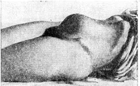 Клинические проявления. При острой полной задержке мочи на почве заболеваний предстательной желёз ы (абсцесс, аденома, рак), а также при Ишурия на почве стриктуры или травмы больные беспокойны, не находят себе места, испытывают боли в надлобковой области с частыми сильными позывами, безуспешно пытаются выпустить мочу, принимая различные положения. В надлобковой области при осмотре выявляется выбухание, связанное с переполнением мочевого пузыря (рисунок 1).