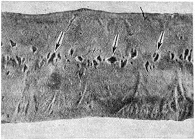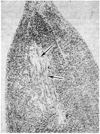 При Коли–инфекция в ряде случаев, кроме нейроваскулярных и дистрофических изменений, наблюдается также пролиферация клеток стромы слизистой оболочки и очаговая воспалительная инфильтрация подслизистой основы кишки лимфогистиоцитарными элементами с большей или меньшей примесью полинуклеаров (рисунок 1). Для обнаружения воспалительных очагов необходимо исследовать кишку на большом протяжении, так как процесс развивается в местах наибольшего скопления бактерий и токсинов.