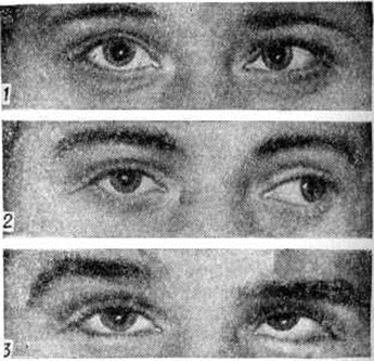 Для устранения двоения применяют очки с призмами, окклюзию больного глаза или неполную окклюзию с помощью частично заматированного очкового стекла в той части поля зрения, где отмечается двоение. При стойких параличах и парезах показана операция. Её производят не ранее 6—12 месяцев после активного консервативного лечения и стабилизации основного процесса. При врождённом паралитическом Косоглазие целесообразно оперировать в возрасте 3—4 лет. При параличе отводящего нерва, помимо резекции наружной прямой и рецессии внутренней прямой мышц, обычно производят трансплантацию сухожильно-мышечных лоскутов, образованных из верхней и нижней прямых мышц. Такая операция нередко восстанавливает некоторую степень подвижности глаза в сторону парализованной мышцы. Содружественное косоглазие может быть врождённым и приобретённым; первичным (без видимой патологии глаза) и вторичным (развивающимся при снижении зрения одного глаза при катаракте, бельме роговицы, патологии сетчатки, зрительного нерва и других заболеваниях глазного яблока); постоянным и периодическим, неаккомодационным (не исчезающим после коррекции аметропии), частично аккомодационным (уменьшающимся под влиянием коррекции аметропии) и аккомодационным (устраняющимся коррекцией аметропии); монолатеральным (косит один определённый глаз); альтернирующим (попеременное отклонение глаз); сходящимся (конвергирующим) — зрительная ось одного из глаз отклонена к носу (рисунок 1, 1)\ расходящимся (дивергирующим) — зрительная ось отклонена к виску (рисунок 1, 2); суправергирующим — отклонение одной из осей кверху (рисунок 1,5); инфравергирующим — отклонение одной из осей книзу. Содружественное сходящееся Косоглазие обычно развивается в раннем детстве и вначале нередко бывает периодическим. Постепенно происходит перестройка всей зрительной системы ребёнка, которая приспосабливается к асимметричному положению глаз. Активное торможение реакции на адекватное раздражение центрального участка сетчатки отклонённого глаза приводит к тому, что его изображения исключаются из зрительного восприятия. Возникает функциональный скотома (смотри полный свод знаний), устраняющая двоение. Эта скотома исчезает при выключении из зрения фиксирующего глаза. Нарушение нормальных бинокулярных связей со временем приобретает все более прочный характер. В искусственных условиях разделения полей зрения обоих глаз иногда возникает так называемый анормальная корреспонденция сетчаток, при которой происходит слияние изображений, падающих на центральную ямку сетчатки одного глаза и на парацентральный участок сетчатки другого. Расходящееся Косоглазие встречается значительно реже сходящегося и отличается более поздним возникновением и меньшей частотой сенсорных нарушений. При монолатеральном Косоглазие функция постоянно косящего глаза находится в состоянии стойкого торможения, что приводит к резкому понижению остроты зрения этого глаза — амблиопии (смотри полный свод знаний). При интенсивном тормозном процессе центральная ямка теряет своё функциональный превосходство перед другими участками сетчатки и возникает неправильная зрительная фиксация. При содружественном Косоглазие двоения, как правило, не бывает. Оба глаза (фиксирующий и косящий) совершают движения примерно в одинако