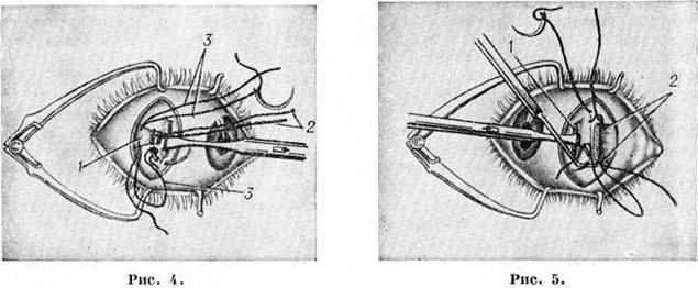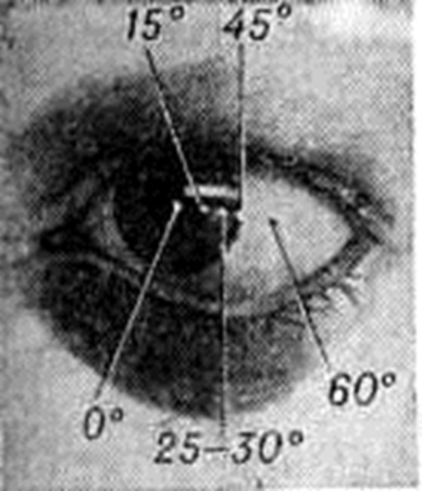 Подвижность глаз определяют путём перемещения перед глазами больного фиксационного объекта в восьми направлениях. При подозрении на парез мышцы для суждения о состоянии глазодвигательного аппарата используют методы коордиметрии и «провоцированной» диплопии. На синоптофоре исследуют способность зрительного анализатора сливать монокулярные изображения объектов. В случае бифовеального слияния определяют ширину фузионных резервов. Зрительную фиксацию исследуют (при выключенном втором глазе) при помощи офтальмоскопов, в систему которых введён фиксационный объект. При правильной фиксации объект проецируется на центральную ямку, при неправильной — на парацентральные участки сетчатки (рисунок 3). Тщательно исследуют оптические среды (смотри полный свод знаний Офтальмоскопия) и глазное дно (смотри полный свод знаний), а также используют дополнительные методы — кампиметрию (смотри полный свод знаний), пробу с последовательным образом, пробу с применением феномена Гайдингера (смотри полный свод знаний Энтоптические явления), электрофизиологический исследования (смотри полный свод знаний Электрофизиология органа зрения). Лечение направлено на восстановление бинокулярного зрения, которое возвращает всю полноту зрительных функций и вместе с тем обеспечивает стойкое устранение асимметрии в положении глаз. Общепринято комплексное лечение содружественного Косоглазие, которое складывается из оптической коррекции аметропии (смотри полный свод знаний), мер по повышению остроты зрения косящего глаза (плеоптики), операций на глазных мышцах, пред и послеоперационных упражнений по восстановлению объединённой деятельности обоих глаз (ортоптики) и их способности правильно оценивать глубину пространства (стереооптики). Для правильного назначения очков больному Косоглазие необходимо точное определение рефракции в условиях медикаментозного расслабления аккомодации. Постоянная оптическая коррекция в сочетании с ортоптическими упражнениями — основной метод лечения аккомодационного Косоглазие, сходящегося при гиперметропии и расходящегося при миопии. Если при ношении очков стабильно сохраняется симметричное положение глаз или восстанавливается бинокулярное зрение, то при небольших степенях гиперметропии оптическую коррекцию каждые 6—12 месяцев уменьшают на 0,5—1,0 диоптрий и затем отменяют. Лечение амблиопии у детей 3—6 лет независимо от состояния фиксации следует начинать с постоянного выключения (окклюзии) ведущего глаза, которое должно проводиться не менее 4 месяцев Цель такого выключения — добиться одинаковой остроты зрения обоих глаз и перехода монолатерального косоглазия в альтернирующее. Окклюзию целесообразно сочетать с методом Аветисова (1968) — локальным «слепящим» раздражением светом центральной ямки сетчатки и разнообразными зрительными упражнениями, выбор которых определяется возрастом, уровнем развития ребёнка, его интересами и склонностями. При отсутствии эффекта от применения окклюзии, а также в случаях неправильной зрительной фиксации у детей старше 6 лет применяют комплексное лечение амблиопии, основу которого составляют метод Кюпперса (1956), использующий отрицательный последовательный образ, возникающий при освещении сетчатки заднего полюса глаза с одновременным прикрытием фовеоляр
