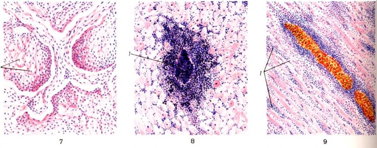 В пользу неврогенно-рефлекторной теории стенотического дыхания при Круп говорит и то обстоятельство, что нередко у ребёнка наблюдается резко выраженный стеноз, приводящий к асфиксии (смотри полный свод знаний), а при патологоанатомическом исследовании находят лишь незначительную плёнку в области голосовых складок или небольшой участок некроза, которые сами по себе никак не могли механически препятствовать нормальному дыханию. Клинические проявления и диагноз. Типичными клинические, проявлениями дифтерийного Круп являются сиплый, иногда афоничный голос, грубый лающий кашель и стеноз дыхательных путей (шумное дыхание, втяжение межрёберных промежутков грудной клетки, напряжение вспомогательной дыхательной мускулатуры). В зависимости от выраженности различают стеноз I, II и III степени. В течении Круп при дифтерии выделяют три периода, или стадии: первая — катаральная, или стадия крупозного кашля, вторая — стеноза и третья — асфиксии. Резких границ между стадиями нет, одна переходит в другую постепенно и незаметно. Длительность стадий также строго не определена. Подробнее клинические, картину дифтерийного Круп— сантиметров Дифтерия. Наибольшие трудности для диагностики представляет Круп при гриппе и острых респираторных вирусных заболеваниях, который является одним из частых и нередко начальных проявлений болезни; в ряде случаев синдром Круп присоединяется к гриппу или острому респираторному заболеванию спустя несколько дней после начала болезни. При этих заболеваниях синдром Круп обычно проявляется внезапно (в отличие от дифтерийного Круп, при к-ром, как правило, развивается постепенно), начинается чаще ночью. Ребёнок вечером перед сном был здоров или у него был небольшой насморк; ночью он внезапно просыпается от приступа кашля, у него сразу появляется затруднённое дыхание; он испуган, мечется в постели, быстро появляется цианоз носогубного треугольника. Важно отметить, что голос при этом бывает хриплым или сипловатым, но во время крика почти всегда прослушиваются звонкие нотки, в отличие от дифтерийного Круп, при котором голос вначале становится сиплым, а к моменту развития стеноза, как правило, афоничным (за исключением редких случаев, когда плёнки располагаются в подскладочном пространстве). Кашель при гриппе и острых респираторных заболеваниях вначале сухой, но очень быстро, к концу первых суток, увлажняется, чего обычно не бывает при дифтерийном Круп Течение Круп при парагриппе и аденовирусной инфекции обычно более лёгкое, чем при гриппе; остро развившийся стеноз при этом быстро ослабевает или полностью проходит через несколько часов после применения тепловых процедур (горячие общие и ножные ванны, тёплое питье, грелки к ногам, горчичники на область гортани). В ряде случаев явления стеноза могут повториться в следующую ночь, но так же благополучно проходят, как и в первый раз. Круп при гриппе часто протекает более тяжело; остро развившийся стеноз может быстро, в течение нескольких часов, прогрессировать. В ряде случаев течение стеноза при гриппе носит волнообразный характер — то усиливается, то уменьшается даже в течение суток, продолжаясь от 7 до 10 дней. Тяжесть и длительность гриппозного Круп зависят не только от выраженности некротического процесса в гортани, трахее и бронхах, но и от нередко присое