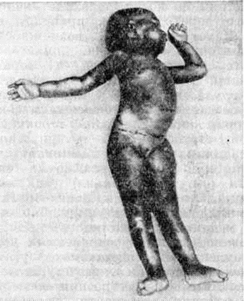 Дети с Квашиоркор начинают поздно говорить, у них отмечается незрелость практических навыков, снижение тонуса мышц и их гипотрофия, снижение рефлексов.