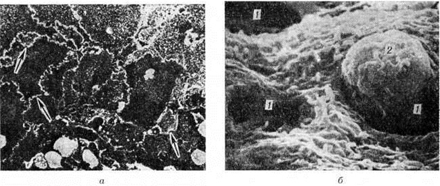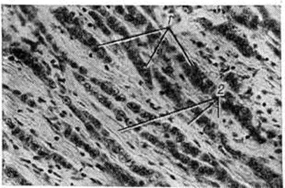 Диффузная Мезотелиома состоит преимущественно из веретенообразных или эпителио-подобных клеток, формирующих тяжи (рисунок), солидные скопления или тубулярные, железисто-подобные разрастания, образованные кубическими или полигональными клетками. В некоторых участках Мезотелиома удаётся обнаружить перемешивание веретенообразных и эпителио-подобных клеток; иногда видны и переходные между двумя этими типами клетки. Фигуры митоза в клетках Мезотелиома наблюдаются редко. Нередко диффузная Мезотелиома обнаруживает выраженную тенденцию к врастанию в прилежащие органы, инфильтрирует лёгкое, печень, кишечник и другие Метастазы часто обнаруживают в регионарных лимф, узлах; метастазы в отдалённые органы, как правило, не возникают. По некоторым экспериментальным и другим данным, в возникновении Мезотелиома отмечена важная этиологического роль некоторых видов асбеста.