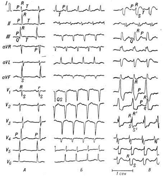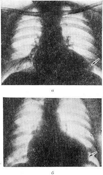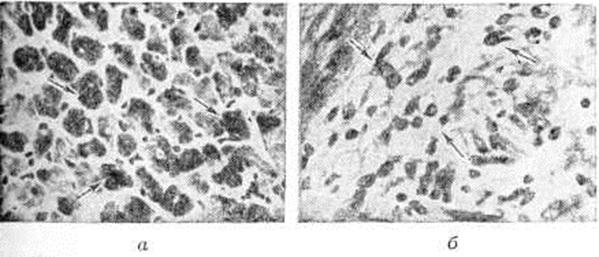 Гигантоклеточный миокардит гистологически характеризуется диффузным Миокардит с распространенными крупными очагами некроза, окаймлёнными клеточным инфильтратом с множеством гигантских клеток миогенного и гистиогенного происхождения (рисунок 9). Подобный по морфологический картине Миокардит описан при тимомах, протекающих с миастеническими кризами, при гранулематозе Вегенера, генерализованном саркоидозе. Гигантоклеточный Миокардит ранее ошибочно рассматривали как диффузный туберкулёзный Миокардит Общие клинические проявления и течениеОдна из наиболее частых жалоб больных Миокардит — жалоба на боль в области сердца. В. А. Максимов (1979) отметил её у 169 из 280 больных неревматическими, преимущественно неспецифическими инфекционно-аллергическими, Миокардит (60,3% случаев); по данным А. Н. Сененко (1973), при тонзиллогенном Миокардит на такую боль жалуются 93% больных. Обычно поражения перикарда отсутствуют; в этих случаях боль может напоминать ангинозную, наблюдающуюся при затяжном приступе стенокардии (смотри полный свод знаний), или по длительности и отсутствию эффекта от приёма нитроглицерина — боль при инфаркте миокарда (смотри полный свод знаний). По иррадиации боль также может напоминать боль, наблюдающуюся при стенокардии и инфаркте миокарда (иррадиирует в руки, преимущественно в левую, в левое плечо, шею, иногда в меж лопаточную область). Боль чаще локализуется не за грудиной, как при инфаркте миокарда, а слева от нее. Обычно она возникает или усиливается при физической нагрузке, но возможна и в покое. Длительность её достигает нескольких часов. Она может многократно повторяться в течение дня, иногда ощущается больным почти постоянно. Однако боль подобного характера наблюдается сравнительно редко; значительно чаще она носит колющий или ноющий характер, иррадиация её при этом отсутствует. Нередко боль, напоминающая ангинозную, чередуется с колющими, режущими или ноющими болями в области верхушки сердца или прекордиальной области. В редких случаях боль связана с сопутствующим перикардитом (смотри полный свод знаний). Жалобы на одышку предъявляет примерно половина больных. Как правило, одышка связана с физическим напряжением, даже незначительным. Тяжёлое течение Миокардит может сопровождаться появлением одышки в покое и приступами удушья по ночам (смотри полный свод знаний Сердечная астма). Одна из частых жалоб — ощущение «перебоев» в работе сердца, «замирания» сердца, а также на сердцебиение (обычно при физической нагрузке). Менее характерны жалобы на сердцебиение в покое. Начало и прекращение сердцебиения, как правило, постепенные, но могут быть и мгновенными (пароксизмальная тахикардия). Жалобы на хаотическое сердцебиение, что характерно для мерцательной аритмии, встречаются редко. Ещё реже больные жалуются на резкое замедление работы сердца (смотри полный свод знаний Аритмии сердца). Часты жалобы на слабость, потливость. Иногда больные жалуются на головную боль, головокружение и наклонность к обморокам, что позволяет думать о тяжёлых нарушениях проводимости или значительном угнетении функции синусно-предсердного узла. Другая возможная причина обмороков и головокружений — сопутствующая сосудистая недостаточность (смотри полный свод знаний). При неспецифических инфекционно и токсико-аллергических М