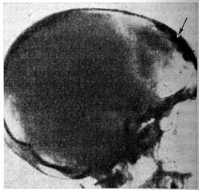 При длительном течении заболевания и резко выраженном гиперостозе лобной кости из-за уменьшения объёма черепа на краниограммах могут быть обнаружены признаки повышения внутричерепного давления (усиление пальцевых вдавлений, углубление борозд синусов и другие).