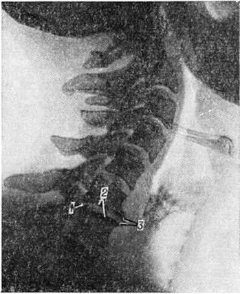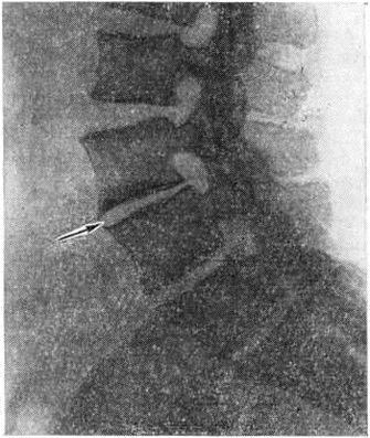 Эпидуральная жировая ткань превращается в жировую клетчатку, аналогичную подкожной жировой клетчатке, между жёлтыми связками и твёрдой оболочкой спинного мозга развиваются рубцы. Клинические, картина в этот период может быть достаточно пёстрой, поскольку отдельные диски поражены в разной степени. При неосложнённом течении Остеохондроз фиброз диска может означать достаточно стойкую ремиссию в течении заболевания. Остеохондроз на разных стадиях может сочетаться с проявлениями деформирующего спондилёза (смотри полный свод знаний). Неврологические проявления в какой-то степени зависят от периода Остеохондроз, а также развиваются в связи с рядом иных вертебральных и особенно экстравертебральных факторов. В течении заболевания различают стадии обострения и ремиссии. Стадия обострения, в свою очередь, делится на фазу прогрессирования, стационарную фазу и фазу регрессирования. В острой стадии возникают острые боли с последующей иррадиацией в руку, поясницу или ногу. Компрессионные синдромы, формирующиеся на поясничном уровне чаще за счёт разрыва диска, обусловлены сдавлением корешков (смотри полный свод знаний: Радикулит), дополнительных радикуломедуллярных артерий (смотри полный свод знаний: Спинной мозг). Синдромы сдавления на шейном уровне чаще формируются за счёт задних и заднебоковых унковертебральных разрастаний и обусловлены сдавлением корешков спинномозговых нервов и позвоночной артерии с её симпатическим позвоночным сплетением (смотри полный свод знаний: Барре — Льеу синдром). Для шейного Остеохондроз характерны боли сдавливающего, рвущего, иногда жгучего характера, локализующиеся в шее, затылке, в области плеча и лопаток. Наряду с этим могут наблюдаться нарушения чувствительности и двигательные расстройства в зоне иннервации соответствующих шейных корешков. Шейная миелопатия (смотри полный свод знаний), возникающая при нарушении кровообращения в спинном мозге, чаще всего проявляется синдромами амиотрофического бокового склероза (смотри полный свод знаний) или спинального глиоза. При грудном Остеохондроз вертеброгенные, в частности дискогенные корешковые и спинальные, синдромы наблюдаются редко. Межрёберные невралгии чаще возникают в результате других патологический процессов (опоясывающего лишая, опухоли позвоночника и другие) При грудной, так же как и при нижней шейной локализации Остеохондроз могут быть псевдоангинозные боли в области сердца за грудиной с типичной иррадиацией. При поясничном Остеохондроз наиболее частыми неврологический проявлениями являются боли (люмбалгии), люмбаго (прострел), корешковые боли и расстройства чувствительности в ногах, часто снижение сухожильных рефлексов и вегетативно-трофические расстройства. В некоторых случаях возможны синдромы поражения эпиконуса, конуса, конского хвоста. Рефлекторные проявления Остеохондроз формируются во всех периодах Остеохондроз и наиболее часто выражаются следующими синдромами. 1. Вертебральные синдромы — острые шейные или поясничные боли (прострелы), подострые или хронический боли (цервикалгия и люмбалгия) с нередкой контрактурой паровертебральных мышц и изменением физиологический изгибов. К ним относится и пояснично-тазобедренная разгибательная ригидность (фиксированный лордоз и ограничение сгибания в тазобедр