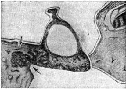 Позднее это более подробно было обосновано гистологический исследованиями Ансона (В. Anson) и Баста (Т. Bast). К. Л. Хилое высказывает предположение, что Отосклероз представляет собой поражение не только костного лабиринта, но и всего слухового анализатора, включая его представительство в коре большого мозга. Патологическая анатомия. Патологический процесс при Отосклероз носит очаговый характер и ограничен костным лабиринтом, заключённым в пирамиде височной кости. В других костях организма изменений, подобных отосклеротическим, не наблюдается. В этом смысле Отосклероз можно условно назвать болезнью костной ткани лабиринта. Исключительность поражения костного лабиринта при Отосклероз объясняют уникальностью формирования его костной стенки, которая образована тремя слоями костной ткани, различающейся по типу окостенения: эндостальной, энхондральной и периостальной. К моменту рождения ребёнка костный лабиринт сформирован в такой степени, что он соответствует костному лабиринту взрослого человека. При этом формообразовательные процессы в периостальном и эндостальном слоях костной стенки лабиринта практически закончены, в то время как во внутреннем энхондральном слое костеобразование с замещением остатков эмбрионального хряща продолжается. Островки эмбрионального хряща обнаруживаются иногда и в основании стремени. Отосклеротические очаги возникают в энхондральном слое костного лабиринта по границе с периостальной костью. Излюбленная локализация очагов — область вблизи лабиринтных окон (медиальный край окна преддверия и мыс), костный лабиринт улитки, костные полукружные каналы, особенно в области общей костной ножки переднего и заднего полукружных каналов, стенка внутреннего слухового прохода. Наблюдается поражение пирамид обеих височных костей, причём размеры и распространённость очагов одинаковы. Очаги Отосклероз в костном лабиринте составляют так называемый гистологический отосклероз, так как обычно клинически не проявляются. Распространение отосклеротического очага на нишу окна преддверия с переходом на основание стремени приводит к анкилозу барабанно-стременного синдесмоза, сопровождающемуся нарушением воздушной звукопроводимости и развитием кондуктивной тугоухости — клинического Отосклероз Если гистологический Отосклероз всегда является двусторонним поражением, то клинический Отосклероз может длительное время проявляться как односторонний процесс. Вовлечение в отосклеротический процесс основания стремени первоначально рассматривалось только как результат распространения отосклеротического очага со стороны костного лабиринта (рисунок 2). Оперативное лечение Отосклероз расширило возможности гистологический исследования отосклеротического очага в удалённом стремени. Обнаружение отосклеротического очага в основании удалённого стремени при сохранении кольцевой связки стремени и целостности хрящевой поверхности пластины указывает на возможность самостоятельного развития отосклеротического процесса в самом основании стремени. Возникновение отосклеротического очага в основании стремени находит объяснение в закономерностях эмбриогенеза стремени, основание которого формируется вместе с костным лабиринтом. Ножки стремени и головка, по-видимому, могут вовлекаться в отос