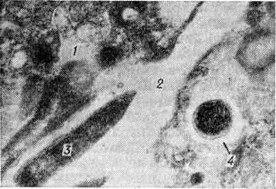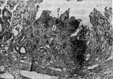 Со стороны кроветворных органов и крови в периоде шока наблюдается угнетение миелопоэза, лимфопоэза, явления плазмоцитолиза и полнокровия лимфатических, узлов и селезёнки; в последней усилена поглотительная функция клеток ретикулоэндотелиальной системы и макрофагов, эритрофагия, блокада клеток ретикулоэндотелиальной системы дериватами гемоглобина и другими частицами. В периодах токсемии и септикотоксемии наступает гиперплазия лимфатических, узлов, пролиферация клеток лимфоидного и плазмоцитарного ряда. Электронно-микроскопические и авторадиографические исследования свидетельствуют о функциональный неполноценности лейкоцитов, макрофагов, плазматических клеток, деструкции их органелл, проявляющейся в незавершённом фагоцитозе и нарушении продукции глобулинов. При ожоговом истощении к этому присоединяются явления атрофии и очагового склероза иммунокомпетентных органов. В различных отделах желудочно-кишечные тракта, преимущественно в желудке и двенадцатиперстной кишке, иногда возникают множественные эрозии и острые язвы слизистой оболочки (рисунок 3). В основе их лежат нарушения микроциркуляции, тромботические процессы, кровоизлияния в слизистую оболочку, септические эмболии (рисунок 4). Чаще эрозивно-язвенные поражения развиваются в период септикотоксемии и особенно при явлениях ожогового истощения. В период септикотоксемии часто развиваются пневмонии, иногда как осложнение Ожоги дыхательных путей. В поздние периоды типичны бронхогенно-гематогенные диффузные воспалительные процессы (цветной рисунок 1). При развитии сепсиса (чаще всего стафилококкового или синегнойного происхождения), обычно протекающего по типу септикопиемии, метастатические абсцессы локализуются преимущественно в лёгких, почках, миокарде. Иногда встречается грибковый (кандидамикозный и аспергиллезный) сепсис с некротическими очагами в органах (цветной рисунок 3). Своеобразной формой ожогового сепсиса является эндотоксинемия, обусловленная дополнительной инвазией грамотрицательной микрофлоры через лёгкие, кишечник и так далее, в связи с деструкцией (на ультраструктурном уровне) аэрогематического, энтероцитарного (рисунок 5) и других гистогематических барьеров. Для ожогового истощения характерны резко выраженные дистрофические изменения органов и тканей, сопровождающиеся их атрофией и склерозом. На фоне этих изменений развиваются воспалительные (преимущественно гнойные) процессы. Клиническая картина. Местные изменения при Ожоги в начальном периоде клинически проявляются как серозное или серозно-геморрагическое воспаление — ожоговый дерматит, исход которого зависит от площади и глубины поражения и характера поражающего фактора. При ожоге I степени наблюдаются разлитая краснота и небольшая припухлость, появляющиеся через несколько секунд после Ожоги пламенем, кипятком, паром или через несколько часов при действии солнечных лучей (смотри полный свод знаний Дерматиты, дерматит солнечный). Отмечаются сильные жгучие боли в поражённом участке. Через несколько часов, чаще в течение 3—5 дней, эти явления проходят, повреждённый эпидермис слущивается и на месте Ожоги иногда остаётся небольшая пигментация. При ожоге II степени краснота, припухлость и боли выражены значительнее, чем при ожоге I степени. Пузыри образуются ср
