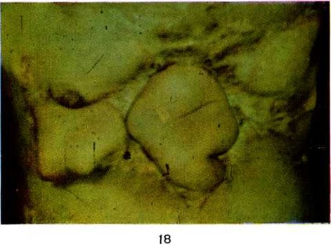 Оперативному вмешательству предшествует общее и интенсивное местное лечение, направленное на подавление возбудителей инфекции (повязки с гипертоническим раствором хлорида натрия, сульфаниламидами, антибиотиками). Из оперативных методов эффективен метод одномоментного иссечения поражённого участка с наложением первичных швов. Однако он возможен при ограниченных лучевых Ожоги, локализующихся на брюшной стенке, спине, бедре, то есть на местах, где в патологический процесс не вовлекаются крупные артерии, нервные стволы, сухожилия. В противном случае производят пересадку кожи на грануляции после подготовки их мазевыми повязками с солкосерилом, фторокортом и другие При этом лучший эффект достигается пересадкой кожно-подкожного лоскута на ножке, которую пересекают к концу 3-й недель При очень тяжёлых лучевых Ожоги конечности с обширным некрозом мягких тканей, с обнажением костей, секвестрацией сухожилий, а также при развитии гангрены показана ампутация (смотри полный свод знаний). В поздние сроки после лучевых Ожоги при длительно не заживающих лучевых язвах с наличием деформирующих рубцов производят их иссечение. Образовавшийся дефект закрывают с помощью пластики местными тканями, свободной пересадки кожи, филатовского стебля (цветной рисунок 17, 18), итальянской пластики (рисунок 11) или с помощью комбинированной пластики. На всех этапах оперативного лечения лучевых Ожоги проводят необходимую общую терапию пострадавшего: вводят анальгетики, антибиотики, витамины, переливают кровь и её препараты и другие Реабилитация пострадавших с лучевыми Ожоги проводится по тем же принципам, что и при термических ожогах. Прогноз в основном определяется площадью и глубиной поражения тканей. При прочих равных условиях тяжелее протекают лучевые Ожоги, вызванные гамма-нейтронным, чем бетаизлучением. Предшествующие заболевания, истощение, переутомление, снижающие резистентность организма к действию ионизирующего излучения, отрицательно сказываются на течении поражений. Особенно неблагоприятно протекают лучевые Ожоги на фоне лучевой болезни, когда нарушается кроветворение развивается геморрагический синдром и снижается общая сопротивляемость организма. По данным Хелда (Held, 1961), 30% лучевых язв склонны к малигнизации. Химические ожоги Хим. Ожоги вызываются крепкими неорганическими кислотами (азотная, серная, соляная, фтористо-водородная и другие), щелочами (едкий калий, едкий натрий, негашёная известь, каустическая сода), а также солями некоторых тяжёлых металлов (нитрат серебра, хлористый цинк, алюминийорганические соединения и другие). Чаще всего химический Ожоги поражаются открытые участки тела, однако при случайном приёме внутрь кислот и щелочей возможны Ожоги слизистой оболочки полости рта и пищевода. Под действием кислот изменяется состояние коллоидов клеток, происходит дегидратация и коагуляция тканей, наступает их гибель по типу сухого некроза. Щелочи при взаимодействии с белками образуют щелочные альбуминаты, омыляют жиры, что способствует развитию влажного некроза. Соли тяжёлых металлов по механизму действия стоят ближе к кислотам. Химических Ожоги, как и термические, подразделяются по глубине поражения тканей на четыре степени. Однако при химический ожогах II степени не образуются пузыри. Хим. Ожоги обычно быва
