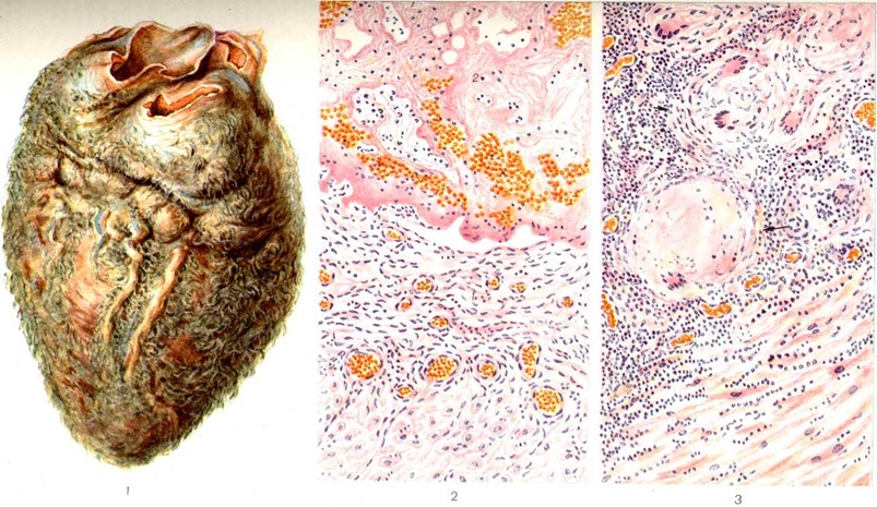 КлассификацияВследствие редкой нозологический самостоятельности Перикардит его классификация ограничивается разделением по этиологии и клинико-морфологически проявлениям. В Международной статистической классификации болезней (1975) это разделение представлено тремя рубриками: ревматический Перикардит, острый неревматический Перикардит и прочие поражения перикарда. Более подробная этиологического классификация Перикардит предусматривает их разделение на группы по виду этиологического факторов, прежде всего на инфекционные Перикардит и неинфекционные, или асептические, а также Перикардит, вызванные простейшими (амёбный, малярийный); паразитарные Перикардит (вызванные эхинококком, цистицерком). К инфекционным относят бактериальные Перикардит— неспецифические, чаще всего кокковые, и специфические: Туляремийный, бруцеллезный, сальмонеллёзный, дизентерийный, сифилитический. Особое место среди инфекционных Перикардит занимает туберкулёзный Перикардит Группа небактериальных инфекционных Перикардит включает вирусные и риккетсиозные Перикардит (при гриппе, инфекционном мононуклеозе и другие); грибковые Перикардит (актиномикоз, кандидоз). К инфекционным относят также Перикардит, не связанные с непосредственным внедрением возбудителя в перикард и развивающиеся как инфекционно-аллергические, если доказана микробная природа аллергизации (например, ревматический перикардит). Неинфекционными считают первично-аллергические Перикардит, например, при сывороточной болезни; Перикардит, вызываемые непосредственным повреждением сердца,— травматические (при закрытых травмах и местных ожогах электроразрядами) и эпистенокардические при инфаркте миокарда; аутоаллергические Перикардит, к которым относят альтерогенные — посттравматические, постинфарктные, посткомиссуро и постперикардиотомные; Перикардит при системных заболеваниях соединительной ткани (красная волчанка и склеродермия, ревматоидный артрит, дерматомиозит), заболеваниях крови и геморрагических диатезах, злокачественных опухолях, болезнях с глубокими обменными нарушениями (уремический, подагрический Перикардит). Выделяют также идиопатический, или острый доброкачественный, Перикардит, этиология которого не установлена. Диагноз такого Перикардит ставят, по-видимому, не всегда обоснованно в случаях, когда не удаётся доступными методами установить возбудителя заболевания, или при описании казуистических Перикардит (аллергической природы, а также вызванных редкими возбудителями, особенно вирусами). По клинические, течению Перикардит разделяют на острые и хронические, а по клинико-морфологически проявлениям выделяют фибринозный (сухой), экссудативный (с серозным, серозно-фибринозным или геморрагическим экссудатом), гнойный, гнилостный, экссудативно-адгезивный, адгезивный (слипчивый) и фиброзный (рубцовый). Под определением «выпотной», или «экссудативный», описывают только ту форму Перикардит, при которой в перикардиальной полости накапливается значительное количество жидкого выпота. Течение и диагностика этой формы Перикардит существенно отличаются от так называемый сухого Перикардит, характеризующегося фибринозным экссудатом. Гнойные и гнилостные Перикардит описываются также обособленно от экссудативных. Вариантами Перикардит явл