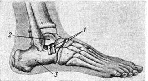Травматическое плоскостопие является результатом неправильно сросшихся переломов лодыжек, костей предплюсны и плюсны (рисунок 7), повреждения мягких тканей, укрепляющих своды стопы. Лечение включает физиотерапевтические процедуры, ношение ортопедических стелек, ортопедической обуви. При Плоскостопие, сочетающемся с вальгусным отклонением стопы, что иногда наблюдается после перелома лодыжек, показана надлодыжечная остеотомия (смотри полный свод знаний) с фиксацией стопы в корригированном положении.