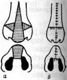 При гладком течении послеоперационного периода нормальная конфигурация носа обычно восстанавливается (рисунок 1, б). Рецидивы Ринофима возможны при неполном удалении поражённых тканей.