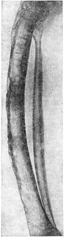 К вероятным признакам, позволяющим ставить диагноз позднего врождённого Сифилис лишь при наличии подтверждающих данных (анамнез; результаты клинического и серологического обследования ребёнка и матери, изменения в цереброспинальной жидкости), относятся симптом Робинсона — Фурнье, саблевидные голени — искривление большеберцовых костей вперёд (рисунок 6), деформация носа (седловидный, лорнетовидный, «козлиный» нос), ягодицеобразный череп, кисетообразные и почкообразные зубы. Симптом Робинсона—Фурнье возникает в результате перенесённого в грудном Возрасте диффузного сифилида и проявляется белесоватыми тонкими рубцами в виде сетки или линейных полос, радиарно расположенных вокруг губ, углов рта, на подбородке. Их следует дифференцировать -с рубчиками после ожогов, пиодермий, кандидоза, герпетиформной экземы Капоши (смотри полный свод знаний: Вакцинные сыпи). Саблевидные голени возникают после перенесённого в грудном возрасте остеохондрита. Ложные саблевидные голени возможны при приобретённом Сифилис после перенесённого остеопериостита и при болезни Педжета. К стигматам (дистрофиям) относится симптом Авситидийского, описанный им в 1891 год (утолщение грудинного конца ключицы, чаще правой, возникающее из-за диффузного гиперостоза), дистрофия костей черепа в виде увеличения теменных и лобных бугров, высокое («готическое», или «стрельчатое») твёрдое небо, аксифоидия (отсутствие мечевидного отростка грудины), бугорки Карабелли (наличие пятого добавочного бугорка на жевательной поверхности 1-го моляра верхней челюсти), диастема Гоше (широко расставленные верхние резцы); инфантильный мизинец, гипертрихоз (зарастание волосами лба почти до бровей и усиленный рост волос); асимметрия ушных раковин. Диагноз врождённого Сифилис устанавливают на основании клинико-серологического обследования с учётом возрастных особенностей. В диагностике скрытых (латентных) форм или при слабо выраженной симптоматике, особенно у детей грудного возраста, существенную роль играют данные анамнеза (анализ давности заболевания матери, качество лечения её до и во время беременности), результаты серологических реакций у ребёнка, в том числе РИБТ и РИФ и рентгенографического исследования костей, а также осмотр глазного дна. При активном раннем врождённом Сифилис серологические реакции положительны у 95—100% больных. При врождённом Сифилис раннего детского возраста серологические реакции крови обычно положительны. Диагноз позднего врождённого Сифилис устанавливают на основании наличия безусловных признаков, сопоставления вероятных признаков и стигмат с клинические, проявлениями Сифилис (поражение внутренних органов, нервной системы, кожи и слизистых оболочек), а также с анамнезом, положительными серологический реакциями крови. Классические серологические реакции положительны у 70—92% больных, а РИБТ и РИФ — почти у 100%. Для диагноза скрытого позднего врождённого Сифилис важен анамнез (сифилис у матери) и наличие положительных серологических реакций крови, в том числе РИБТ и РИФ. Для дифференциальной диагностики скрытых форм врождённого Сифилис у новорожденных с ложноположительными серологическими реакциями большое значение имеет РИФ с IgM, а также РИБТ, которые, как правило, положительны у детей, больных врождённым Сифилис Лечение. Детя