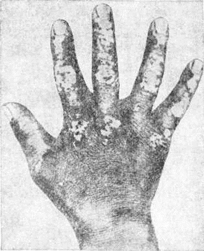 Остеоартропатии при Сирингомиелия развиваются преимущественно в верхней конечности. Чаще встречается поражение одного сустава, но в редких случаях наблюдаются изменения и нескольких суставов (смотри полный свод знаний: Артропатия). В развитии остеоартропатии при Сирингомиелия рентгенологически различают три стадии — латентную, стадию разрушения (преимущественно литического) и стадию реактивных изменений (преимущественно гиперостотических). Латентная стадия проявляется остеосклерозом (смотри полный свод знаний) прилежащих к суставным поверхностям отделов костей, узурацией субхондральных отделов, сужением суставной щели вследствие истончения хрящевого покрова или её расширения вследствие накопления выпота. В дальнейшем появляются отломы краёв эпифизов, рассасывание ближайших к суставам отделов костей, причём часто исчезают целые эпифизы, метафизы и даже части диафизов. Наряду с остеолитическими процессами возникают и выраженные гиперостотические изменения в виде чрезмерных, причудливой формы напластований костной ткани, окостенений мягких околосуставных тканей. Разрушение и созидание костной ткани происходит беспорядочно, хаотично. Одновременно появляются изменения и в связочном аппарате — расслабляются суставная капсула, связки, что способствует чрезмерной подвижности в суставе, разболтанности, резко выраженному смещению костей сустава — патологический Вывиху (смотри полный свод знаний). Различают две формы остеоартропатий — остеолитическую и гиперостотическую, которые протекают соответственно с преимущественно деструктивными, литическими, изменениями или с гиперостозом (смотри полный свод знаний) — значительным костеобразованием, с причудливым утолщением кости и уплотнением её структуры (рисунок 4). При Сирингомиелия чаще всего поражаются локтевые суставы, несколько реже — плечевые. Лучезапястные и межфаланговые суставы поражаются редко. В пальцах кисти встречаются изменения главным образом в виде остеолиза ногтевых фаланг, а также разрушения межфаланговых суставов. Наиболее выраженные изменения наблюдаются в костях локтевых суставов. В плечевых суставах деструктивные костные изменения менее выражены, чаще они проявляются частичной деструкцией головки плечевой кости и суставной впадины лопатки (рисунок 5). Обычно, несмотря на большие деструктивные костные изменения, остеопороз не отмечается. Поражение суставов в виде остеоартропатий при Сирингомиелия часто сопровождается обызвествлением и окостенением причудливой формы и различной плотности мягких, главным образом околосуставных, тканей, в ряде случаев чрезвычайно обильным. Кроме остеоартропатий, при Сирингомиелия наблюдаются и остеопатии — трофические внесуставные изменения в диафизах длинных трубчатых костей, главным образом в костях предплечья, в виде локальных гиперостоза и рассасывания, приводящих к патологический переломам и образованию ложных суставов (рисунок 6). Так, иногда в локтевой кости наблюдаются зоны перестройки и остеолиза (рисунок 7), приводящие к нарушению целости кости и спонтанному перелому. Описаны своеобразные изменения скелета в виде увеличения костей кисти — так называемой хейромегалии. Нарушается психический статус, снижается память, способность к обобщению, отмечается лабильность эмоционал