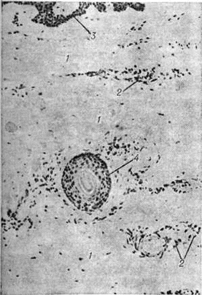 Охлаждение, вибрация, травма, контакт с некоторыми химический агентами (кремниевая пыль, хлорвинил и другие), инфекции, нейроэндокринные нарушения, предшествующие у ряда больных развитию системной Склеродермия, могут рассматриваться как провоцирующие факторы. Они сохраняют своё значение в теории полигенного мультифакториального наследования системной Склеродермия Патогенез сложен, он включает характерные изменения метаболизма соединительной ткани (смотри полный свод знаний) с увеличением биосинтеза коллагена (смотри полный свод знаний) и неофибриллогенеза как основы генерализованного фиброза, иммунные нарушения и поражение сосудистого, микроциркуляторного русла с развитием своеобразной склеродермической ангиопатии (облитерирующий эндартериолит, редукция капилляров, распространённые вазоспастические реакции). Для системной Склеродермия характерна гиперактивность фибробластов с избыточным коллагено и фибриллообразованием при нарушении межклеточного и внутритканевого взаимодействия компонентов соединительной ткани. Наблюдаются увеличение содержания оксипролина (смотри полный свод знаний: Пролин) в моче и плазме крови больных, значительное повышение скорости биосинтеза коллагена в коже, увеличение растворимой фракции коллагена и энзима протоколлагенпролин-гидроксилазы у части больных, ультраструктурные признаки повышенной функциональной активности фибробластов кожи и усиленного неофибриллогенеза. Склеродермоподобный синдром при лечении блеомицином также связан с избыточной продукцией коллагена вследствие стимулирующего воздействия препарата на фибробласты. При исследовании монослойной культуры фибробластов кожи больных системной Склеродермия обнаружена фенотипически устойчивая гиперпродукция компонентов соединительной ткани, главным образом коллагена, выявлено нарушение функциональных свойств мембраны фибробластов (аномальная реакция на адреналин и другие). Изменение функций коллагенсинтезирующих клеток со сниженным или «дефектным» восприятием сигнала со стороны регуляторных систем организма может вести к аномалии процессов фибриллообразования (агрегации коллагеновых волокон, сборки фибрилл и другие) и характерному для системной Склеродермия фиброзированию тканей. Системной Склеродермия свойственны также нарушения гуморального и клеточного иммунитета (смотри полный свод знаний), о чем свидетельствует сочетание с различными аутоиммунными заболеваниями и синдромами — гемолитической анемией (смотри полный свод знаний), тиреоидитом Хасимото (смотри полный свод знаний: Хасимото болезнь), синдромом Шегрена (смотри полный свод знаний: Шегрена синдром) и другие При ней нередко выявляются: антинуклеолярные и антинуклеарные антитела, включая антитела к антигену Scleroderma-70, антицентромерные (к центромерному хроматину) аутоантитела; антитела и клеточные иммунные реакции на коллаген; снижение содержания Т-супрессоров при нормальном содержании В-лимфоцитов в крови; цитопатический эффект лимфоцитов; сходство кожных и сосудистых изменений при системной Склеродермия с реакциями, наблюдаемыми при трансплантации костного мозга и другие Важное патогенетическое значение имеют нарушения микроциркуляции (смотри полный свод знаний) и собственно склеродермическая ангиопатия, играю