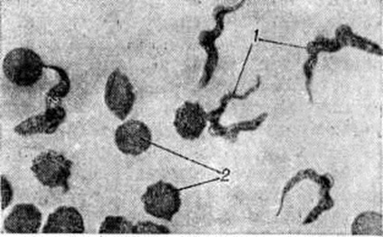 Патогенез и патологическая анатомия обеих форм Сонная болезнь сходны. Внедрившиеся в подкожную клетчатку человека трипаносомы размножаются на месте укуса, вызывая к 5-му дню формирование трипаносомного шанкра. Диссеминация паразитов по лимфатических сосудам сопровождается лимфаденопатией, а через 5 дней (при гамбийской форме Сонная болезнь) и через 12 дней (при родезийской форме) с момента образования шанкра трипаносомы появляются в крови, а вскоре и в цереброспинальной жидкости; при этом количество паразитов в крови изменяется — периоды большой численности паразитов (2—3 дня) сменяются периодами низкой численности паразитов (2—10 дней). При гамбийской Сонная болезнь паразитемия относительно скудная, при родезийской форме уровень её достигает 105 паразитов в 1 миллилитров крови. Возрастает уровень конглютинина (смотри полный свод знаний: Конглютинация), комплемент (смотри полный свод знаний) осаждается в тканях, развивается гипокомплементемия и гипергаммаглобулинемия главным образом за счёт lgM, активизируется кининовая система. Наряду со специфическими антителами (смотри полный свод знаний) продуцируются гетерофильные антитела, субстанции типа ревматоидного фактора (смотри полный свод знаний), антинуклеарные антитела, обнаруживаются циркулирующие и связанные с тканями иммунные комплексы, что соответствует снижению иммунной защиты организма больного. В различных органах, включая головной мозг, обнаруживаются многочисленные очаги периваскулярной инфильтрации плазматическими клетками, точечные кровоизлияния, некрозы. Воспалительные изменения в головном мозге распространяются на кору головного мозга, захватывают базальные ядра, средний и промежуточный мозг. Начинается процесс демиелинизации, обусловленной аутоиммунной реакцией. Иммунитет. Человек обладает естественным иммунитетом (смотри полный свод знаний) ко многим видам африканских трипаносом, поражающих животных, и восприимчив только к Т. gambiense и Т. rhodesiense. Перенесённое заболевание не оставляет после себя стойкого иммунитета. Одним из факторов, нарушающих развитие специфического иммунитета при Сонная болезнь, является антигенная изменчивость трипаносом по ходу инвазии. Образующиеся антитела, специфичные по отношению к данному антигенному варианту паразита, подавляют его численность, но не действуют на новый вариант. При экспериментальном трипаносомозе по ходу инвазии удавалось выявить до тридцати трёх антигенных вариантов трипаносом. Вследствие этого инвазия непрерывно прогрессирует без тенденции к самоизлечению. По причинам антигенной изменчивости возбудителей пока не удалось разработать метода специфической иммунопрофилактики Сонная болезнь Клиническая картина. Гамбийская форма трипаносомоза отличается длительным хронический течением. Выделяют два периода болезни: ранний (гематолимфатический) и поздний (менингоэнцефалитический). Гематолимфатический период продолжается от нескольких месяцев до 5 лет, в среднем — год. На коже в месте укуса мухи цеце через 5 дней возникает первичный аффект — трипаносомный шанкр, или трипанома,— плотный болезненный волдырь диаметром 1—2 сантиметров, окружённый беловатой восковидной зоной, иногда изъязвляющийся. Обычно он спонтанно исчезает через несколько дней. При пункции в содержимом волдыря обнар