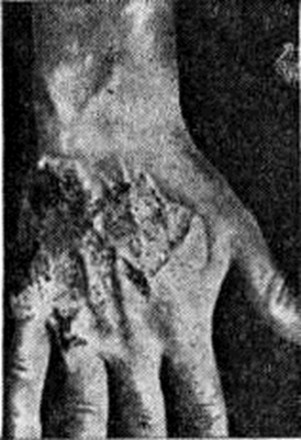 Диссеминированный кожный Споротрихоз бывает язвенным, гуммозно-язвенным, язвенно-вегетирующим (рисунок 2) и абсцедирующим; по клинические, картине он напоминает пиодермию (смотри полный свод знаний).