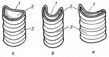 Функциональный трахеостеноз. Причиной функционального Трахеостеноз обычно является расслабление или атрофия перепончатой стенки трахеи после перенесенных респираторных инфекционные болезней или при эмфиземе легких. Сужение просвета трахеи в таких случаях происходит только во время выдоха (так называемый экспираторный стеноз, или дискинезия трахеи), когда перепончатая стенка западает в просвет трахеи (рисунок).