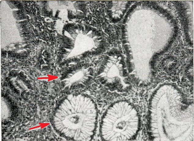 Ворсинчатая опухоль долго могут оставаться незаметными для больных, протекая в течение длительного времени бессимптомно. Затем появляется наиболее частый симптом — выделения из прямой кишки характерной тягучей слизи, похожей на яичный белок. Значительные скопления такой слизи в кишке нередко вынуждают больного по нескольку раз опорожнять кишечник одной лишь слизью. Частые выделения слизи сопровождаются иногда мацерацией кожи ано-перинеальной области и зудом. Изредка, помимо слизистых выделений, появляются кровянистые в результате повреждения или отрыва ворсинок и нарушения целости их сосудов. Однако кровянистые выделения не носят систематического характера и только длительные повторные кровопотери могут приводить к анемии. Иногда заболевание сопровождается запорами, чувством тяжести и ощущением постороннего тела в прямой кишке, но болей не бывает. Ложные поносы сначала принимаются за проявление проктоколита, хотя при проктоколите выделения обычно серозно-слизистые, иногда с примесью гноя. Кроме того, проктоколиты сопровождаются болями, долго не длятся и прерываются светлыми промежутками. При расположении опухоли близко к заднему проходу она во время дефекации может выпадать (вправляется пальцами). Изредка удаётся обнаружить в испражнениях оторвавшиеся частицы опухоли, микроскопическое исследование которых оказывает существенную помощь в диагностике. При Ворсинчатая опухоль прямой кишки простое пальцевое исследование позволяет поставить диагноз. При этом определяется мягкая, податливая, рыхлая ткань и создаётся ощущение погружения в желеподобную тестообразную массу. При более высоко расположенных новообразованиях необходима ректороманоскопия (смотри), во время которой опухоль или её части могут быть легко взяты для гистологический, исследования. Существенную помощь оказывает рентгенологическое исследование с контрастным веществом (смотри Ирригоскопия).