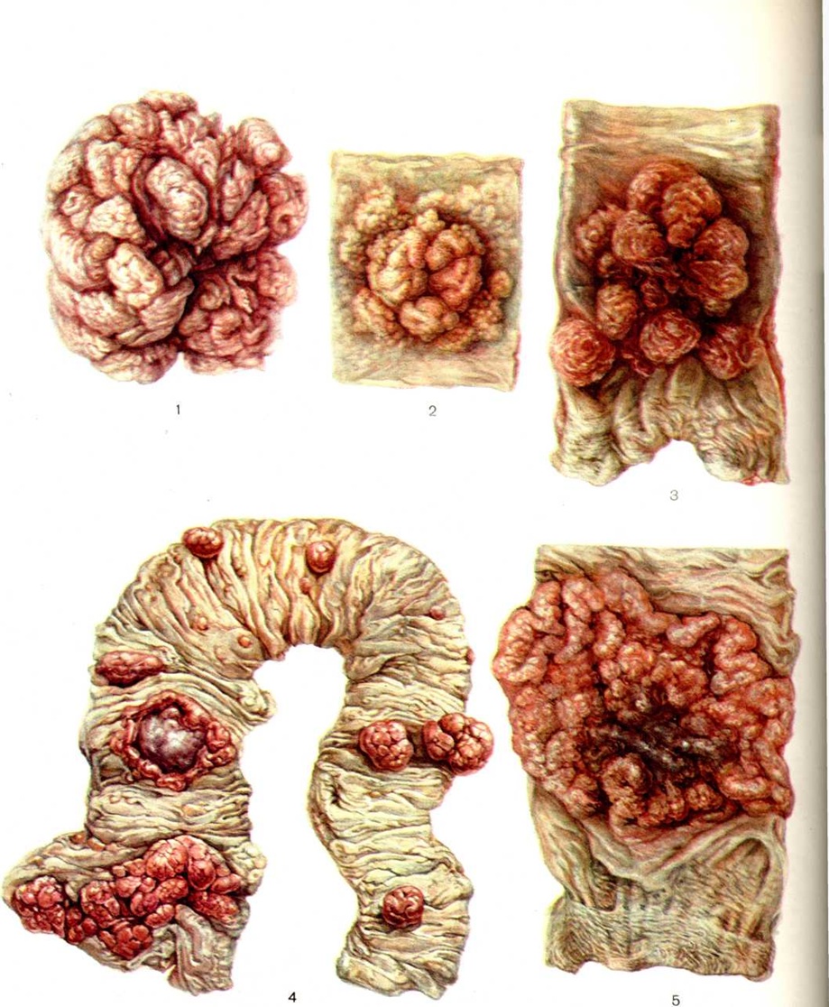Ворсинчатая опухоль встречается у мужчин и женщин среднего и пожилого возраста. Как правило, опухоль локализуется в прямой и сигмовидной кишках (цветной рисунок 1), может достигать больших размеров (8— 10 сантиметров в диаметром), занимая значительную часть кишечной стенки, вплоть до всей окружности.