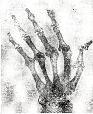 Врождённый характер Вывихи бедренной кости у взрослых распознается ещё и по анатомическим особенностям её проксимального отдела (недоразвитие головки, сочетающееся с вальгусной деформацией шейки бедра и антеторсией) и по уплощению и расширению вертлужной впадины (рисунок 11). Диагностика врождённого вывиха бедра у новорожденных позволяет начать раннее лечение и добиться хороших результатов с помощью функциональных методов лечения (шины Виленского, Волкова, ЦИТО и другие). Позднее обнаружение врождённого вывиха значительно усложняет лечение, требует применения оперативных методик и даёт худший функциональный результат. Патологические вывихи возникают чаще вследствие развития в полости сустава или в суставных концах костей различного рода патологических процессов (рисунок 12), приводящих к обезображиванию суставных концов костей (костно-суставной туберкулёз, остеомиелит и другие), и сопровождаются сходными проявлениями с травматическими Вывихи. Нередко патологические Вывихи и подвывих обусловлены деструкциями суставных поверхностей при моно- и полиартритах (рисунок 13), артрозах.