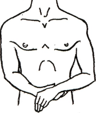 Клиническая картина и диагнозБольшое значение в распознавании Вывихи принадлежит выяснению механизма травмы. Постоянным признаком Вывихи является резкая болезненность в повреждённом суставе и нарушение его функции, возникающие непосредственно в момент травмы. Характерно изменение формы сустава, что позволяет в ряде случаев безошибочно поставить диагноз путём только внешнего осмотра: сустав теряет свою нормальную форму, контуры его сглажены, наблюдается западение на месте одного из суставных концов костей (рисунок 2); конечность находится в вынужденном положении, типичном для отдельных видов Вывихи (рисунок 3), может представляться укороченной или удлинённой. Пальпация выявляет отсутствие головки кости на обычном месте.