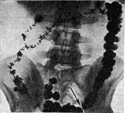 ДиагнозДиагноз устанавливают обычно на основании анамнеза и жалоб больного. Важно выяснение этиологии и типа Запоры, особенно своевременное распознавание опухолевых процессов, вызывающих механический Запоры; при этом наряду с клинический, данными (пожилой возраст, недавнее начало Запоры у лиц с нормальным стулом, примесь крови в кале и другие) большое, диагностическое значение приобретает рентгенологическое исследование, колоноскопия (смотри полный свод знаний), ректор оманоскопия (смотри полный свод знаний). При ректороманоскопии в случае гипермоторики слизистая оболочка прямой и сигмовидной кишок влажная, видна перистальтика, спазмы, окраска слизистой оболочки меняется быстро, при гипомоторике — слизистая оболочка сухая, тусклая, дистальный отдел толстой кишки в спавшемся состоянии, продвижение тубуса затруднено. Известные трудности возникают при дифференциации воспалительных Запоры при колитах и Запоры преимущественно функциональной природы. Распознаванию природы и дифференциации Запоры способствует копрологические исследование (смотри полный свод знаний Кал), биопсия слизистой оболочки прямой или сигмовидной кишки. Большое значение имеет определение типа моторных нарушений толстой кишки. Некоторые данные могут быть получены при пальпации: при преимущественно гипермоторных нарушениях дистальных отделов толстой кишки сигмовидная кишка спастически сокращена, при гипомоторных нарушениях она может быть растянута, не перистальтирует. Важную информацию даёт запись моторики кишечника баллонотензографическим методом. Рентгенологическое исследование имеет целью выявить нарушения моторной функции и тонуса толстой кишки, первичный или вторичный Запоры Его проводят спустя определённые промежутки времени после приёма внутрь бариевой взвеси — через 4— 6—9—12—24—48 часов и позже. Основное внимание обращают на характер заполнения и опорожнения кишки, пассажа по ней бария, вид гаустр, наличие спастических сокращений, а также скоплений газа и жидкости. К ирригоскопии (смотри полный свод знаний) прибегают в случаях, когда необходимо исключить аномалию развития кишки или её органическое поражение, при которых Запоры (вторичный) может быть симптомом заболевания. При первичных Запоры обычно обнаруживают снижение моторной функции, повышение, или понижение тонуса кишки. Эти изменения могут распространяться на всю кишку или на отдельные её сегменты (рисунок 1). Рельеф слизистой оболочки имеет нормальный или несколько «раздражённый» характер (ирритационный рельеф): складки приподняты, расположены более продольно или поперечно, но лишены, признаков воспаления. Смещаемость кишки не нарушена. При гиперкинетических Запоры замедление пассажа бария сочетается с регионарным спазмом и глубокой, нередко сегментирующей гаустрацией в виде многочисленных перетяжек (рисунок 2). Спазмированный отдел кишки иногда имеет вид тонкого шнура (рисунок 3). Реже, при атонических Запоры, обнаруживают пониженный тонус всей толстой кишки или отдельных её сегментов, сопровождающийся расширением просвета, поверхностной сглаженной гаустрацией.