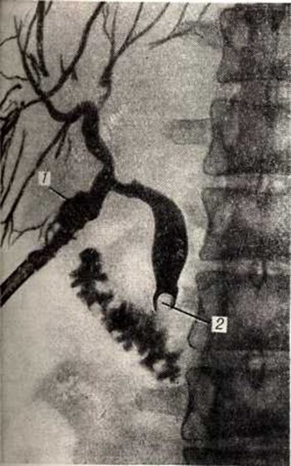 Общее состояние больных с самопроизвольно возникшим неполным наружным Жёлчные свищи обычно не бывает тяжёлым; в таких случаях через свищ вместе с желчью часто выделяется гной, а иногда и конкременты. При посттравматических (огнестрельных) наружных Жёлчные свищи количество выделяемой желчи обычно невелико, нередко наблюдается превращение Жёлчные свищи в гнойно-желчный, а затем в гнойный. Если при этом не развивается гнойных осложнений в печени или в поддиафрагмальном пространстве, то такие раненые быстро поправляются. Диагноз наружного Жёлчные свищи обычно устанавливается без труда на основании истечения из свища желчи (смотри полный свод знаний), однако определить с достоверностью, откуда исходит свищ, удаётся после рентгенологическое исследования (рисунок 1). Одним из самых простых и информативных методов является фистулография (смотри полный свод знаний), позволяющая получить ценные данные. Консервативное лечение Жёлчные свищи может обеспечить лишь временный эффект. Длительное существование наружного Жёлчные свищи всегда свидетельствует о наличии серьёзных патологический изменений в желчевыводящей системе,— чаще всего непроходимости печёночного или общего желчных протоков, поэтому подавляющее число больных с Жёлчные свищи подлежит оперативному лечению. Характер операции по поводу наружного Жёлчные свищи зависит от вида препятствия нормальному оттоку желчи (стриктура, камни, опухоль и прочее). Целью операции является создание или восстановление пути для свободного поступления желчи в кишечник с помощью различного типа внутренних билиодигестивных анастомозов, иссечения стриктуры или опухоли с анастомозированием желчного протока конец в конец, пластики на погружном дренаже и других приёмов. Выбор оперативного вмешательства при наружных Жёлчные свищи зависит от состояния желчных протоков у больного. Если случайные повреждения желчных ходов во время предыдущей операции не вызвали большого дефекта общего желчного протока, то следует стремиться к восстановлению его целости на скрытом дренаже. Восстановление проходимости общего желчного протока путём сшивания конец в конец признается многими хирургами лучшим методом лечения наружных Жёлчные свищи (смотри полный свод знаний Желчные протоки, повреждения, операции). Если наружный Жёлчные свищи образовался в результате повреждения общего желчного протока во время резекции желудка и восстановление его целости затруднено, то технически самой простой операцией ликвидации наружного Жёлчные свищи будет создание соустья между желчным пузырём и петлёй тонкой кишки. В ряде случаев при удалённом желчном пузыре и при облитерации дистального отрезка общего желчного протока приходится прибегать к наложению анастомозов между печёночными протоками и различными отделами желудочно-кишечные тракта. Среди подобных операций наиболее распространёнными являются гепатикодуоденостомия (смотри полный свод знаний) и гепатикоэнтеростомия (смотри полный свод знаний Желчные протоки, операции). В ряде случаев наложение внутрибрюшинных анастомозов желчных протоков с пищеварительным каналом с целью ликвидации наружных Жёлчные свищи становится абсолютно невыполнимым, и тогда у больных со стойкими полными наружными Жёлчные свищи производят подкожную холефистулоэ