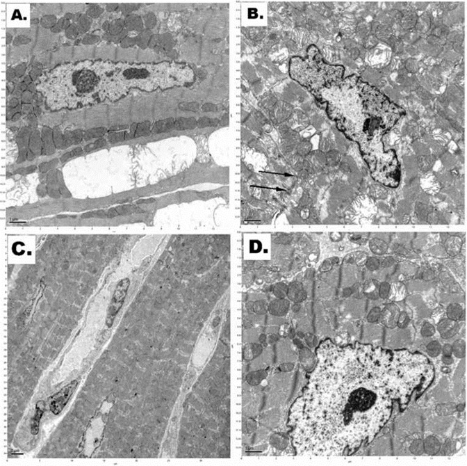 Electron microscopy showed diffuse endothelial cell damage marked perivascular space edema in the cardiac samples after straight freezing in liquid nitrogen under normal pressure (Figure 5B). Extensive capillary damage was in cardiac tissue after incubation at high-pressure nitrogen-oxygen gas mixture and cooling in liquid nitrogen as well (Figure 5C). Structure of capillary endothelial cells was relatively well preserved after applied cryostasis (incubation in high-pressure xenon-oxygen mixture followed by cooling in liquid nitrogen (Figure 5D). Discussion Living tissues cooled below the freezing point of water are damaged by the dehydration of the cells as ice is formed between the cells. The mechanism of freezing damage in living tissues has been elucidated by Renfret (1968) and Mazur (1984) [8, 9]. Ice formation begins in the intercellular spaces. The vapor pressure of the ice is lower than the vapor pressure of the solute water in the surrounding cells and as heat is removed at the freezing point of the solutions, the ice crystals grow between the cells, extracting water from them. As the ice crystals grow, the volume of the cells shrinks, and the cells are crushed between the ice crystals. Additionally, as the cells shrink, the solutes inside the cells are concentrated in the remaining water, increasing the intracellular ionic strength and interfering with the organization of the proteins and other intracellular structures. Eventually, the solute concentration inside the cells reaches the eutectic and freezes. The final state of frozen tissues is pure ice in the former extracellular spaces, and inside the cell membranes a mixture of concentrated cellular components in ice and bound water. In general, this process is not reversible to the point of restoring the tissues to life, although there are occasional exceptions observed in nature (vitrifying polyols (i.e., insects, amphibians), thermal hysteresis proteins (insects, fish) [10, 11]. Most lesions occur during re-warming and reperfusion of the cryopreserved biological tissuesorgans and the process of its development is time-consuming [8]. These changes included condensation of chromatin, large lipid droplets, and partly disrupted plasma membrane and can be seen on electron microscopy (which can be a consequence of the osmotic excursions incurred during a freeze-thaw cycle; leakage of mitochondrial matrix can trigger apoptosis as well). Damage by freezing is caused, besides temperature stress owing to decrease in temperature itself, through the following processes: irreversible change of biological membrane by dehydration from the cells and surface of the membranes caused by freezing process, destruction by loss in selective permeability or physical deformation and death of cell. Light microscopy doesn't show early freezing damage to the cells. The cryostasis technology is based on the concept of forming clathrates (xenon, sulfur hexafluoride, Freon-23, etc.) within the cells, thus reducing dehydration. Biological tissues can be saturated with the clathrate-forming gas(es) by diffusion or perfusion at the appropriate pressure in the range 1-50 bars at a temperature above clathrate-forming temperature. After saturation, the tissue is cooled, first below the clathrate-forming temperature, but above the freezing point of water, then to a temperature where the clathrates are metabolically stable at ambient pressure, and the pressure allowed to go to ambient. The tissue is then gradually cooled down to some appropriate temperature at normal atmospheric pressure and stored an indefinite time. This cryostasis method may protect tissues by retention of water inside the cells by clathrate formation of the water with the introduced gases, limiting the formation of ice outside the cells. Xenon is a nearly ideal clathrate-forming gas, forming clathrates above 0°C under relatively low pressure (two atmospheres) [12, 13]. Xenon has high skin permeability as well [14]. Even an early explanation for xenon anesthesia given by Pauling (1961) and Miller (1961) suggested that clathrate hydrate structures encapsulating the rare gas atoms are formed near synapses, impeding interneuronal transmission [15, 16]. Using xenon under high pressure (which is highly permeable) may prevent cells from freezing damage caused by intracellular dehydration. Our results also showed absence of mitochondrial swelling, rupture of inner and outer membranes, and leakage of mitochondrial matrix into the cytoplasm after applying the cryostasis protocol in comparing with freezing under high pressure of nitrogen. Intercellular freezing causes damage, not so much during the freezing process but rather in the course of thawing, during which re¬crystallization can occur [17]. Xenon clathrates are easily broken as the pressure drops, without intracellular water recrystallization (compared to damage after intracellular ice crystal formation). Cardiomyocytes serve as the best model to study dynamics of mitochondrial damage in clinical and experimental pathology. Safiulina et al (2006) demonstrated that loss of mitochondrial membrane potential leads to mitochondrial swelling [18]. It is well known that permanent ischemia causes loss of matrix density, and this is associated with mitochondrial swelling [19]. Another important sign of severe cellular damage is invagination of the cytoplasmic membrane. This was seen in our control cardiac samples after straight freezing in liquid nitrogen. This morphologic finding is especially seen after applying the cryopreservation procedures and indicates membrane damage [20]. Mitochondrial volume homeostasis is a housekeeping function that is essential for maintaining the structural integrity of the organelle [21]. Mitochondrial swelling is also one of the key players in cytochrome c release associated with apoptotic cell death. Our study used electron microscopy of the cryopreserved cardiac samples because this method can easily detect any ultra
