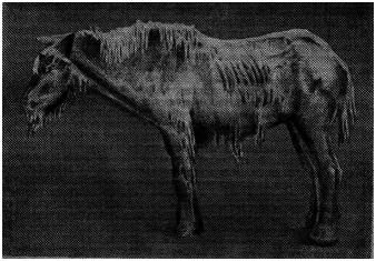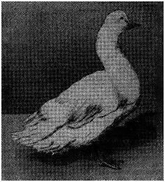 Прилагаемый рис. 1 взят с фотографии лошади, дожившей до 37 лет, — довольно редкий пример! Она принадлежала г-ну Метэну в Майэне. Кожа местами лысая, местами покрытая длинною шерстью, явно атрофирована. Вся осанка животного указывает на общую слабость. Многие птицы в соответствующем возрасте сохраняют еще нормальный вид. В этом можно убедиться, взглянув на фотографию (рис. 2) утки, принадлежавшей д-ру Шарко и достигшей 25-летнего возраста.