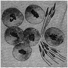 В «Этюдах о природе человека» были уже упомянуты примеры 94- и 103-летних стариков, сохранивших большое количество семенных тел. Примеры эти далеко не исключительны. Не у одного человека, но и у старых млекопитающих клетки семенных желез продолжают размножаться и производить массу семенных тел. Я исследовал с Вейнбергом собаку, умершую в 22 года после нескольких лет очень резко выраженной дряхлости. Органы ее представляли явления дегенерации при наводнении макрофагами; семенные же железы, наоборот, сохраняли поразительную деятельность. Клетки железы усиленно размножались и производили множество семенных тел (рис. 10). Соответственно состоянию этого органа у собаки сохранился и половой инстинкт. Другая исследованная нами собака умерла в 18 лет. У нее был рак семенных желез, вследствие чего не могло быть речи о производстве семенных тел. А между тем, несмотря на свою дряхлость (рис. 11), собака эта незадолго до смерти обнаруживала еще половое влечение.