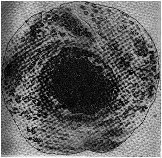 В то время как кости становятся менее плотными, хрящи окостеневают; межпозвоночные хрящи пропитываются известковыми солями, что и вызывает старческое сгорбливание позвоночника. Перемещение извести в старости главным образом распространяется на сосуды. Хотя обызвествление сосудов не для всех стариков неизбежно, тем не менее оно весьма распространено. При этой форме перерождения сосудов известковые соли отлагаются в их видоизмененных частях, что вызывает отвердение и хрупкость артерий. Некоторые авторы, из числа которых приведу Дюран-Фарделя и Соважа, «настаивают на совпадении обызвествления артерий со старческими видоизменениями костей. Особенно резко это соотношение на черепе: измененные артерии cтaновятся извилистыми, обызвествленными. Извилины внутренней поверхности черепа, в которой они помещаются, углубляются и расширяются вследствие атрофии стекловидной пластинки и образования настоящих боковых утолщений, сходных с теми, которые сопровождают атрофию теменных костей». Одно из наиболее резких проявлений дисгармонии старческого возраста заключается в удалении известковых солей из скелета, что делает его более хрупким и слабым, и в перенесении их в сосуды, что лишает последних их эластичности и делает непригодными для питания наших органов. Здесь мы имеем дело с поразительным отклонением от нормы функций клеток нашего организма. Эта атерома артерий тесно связана с артериосклерозом, весьма распространенным, хотя и вовсе не постоянным у стариков. Вопрос такого сосудистого изменения очень сложен и выяснен далеко не удовлетворительно. Он требует еще много новых исследований, прежде чем можно будет сделать какие бы то ни было обобщения. Очень вероятно, что под названиями атеромы и артериосклероза соединены артериальные болезни различного происхождения и характера. В некоторых случаях мы имеем дело с воспалительными процессами, вызванными микробами и их ядами. Таков пример сифилитического артериосклероза, в котором специфические микробы (спириллы Шаудина) проникают в стенки сосудов и производят в них глубокие видоизменения, составляющие одну из главных причин преждевременной старости. Но в других случаях артерии скорее обнаруживают явления дегенерации, вызывающей образование известковых пластинок, затрудняющих кровообращение. Исследования последних лет привели к интереснейшим данным относительно происхождения некоторых артериальных атером. В то время как многочисленные попытки экспериментально вызвать артериальные заболевания давали лишь неопределенные результаты, Жозюэ удалось вызвать истинные атеромы артерий у кроликов, впрыскивая им адреналин, яд надпочечных желез. Этот опыт был подтвержден много раз и сделался классическим. Впоследствии Бовери достиг аналогичного результата впрыскиванием табачного яда — никотина. Мы, следовательно, вправе заключить, что среди артериальных заболеваний, играющих такую важную роль в старости, некоторые объясняются хроническими воспалениями, вызванными микробами, другие же производятся внутренним или внешним отравлением (адреналином, табаком). За последние годы мною и моими учениками Окубо и Драчинским были установлены очень важные факты, проливающие свет на происхождение артериосклероза. Оказалось, что малые дозы паракрезола и индола, вводимые в р