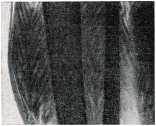 Рентгенодиагностика, Очень убедительные диагностические данные можно получить с помощью рентгенографии. Она позволяет обнаружить такое ничтожное количество газа, которое не удается определить путем перкуссии и пальпации. Применение рентгенографии показало, насколько условно деление форм анаэробной инфекции на эмфизематозные и отечные. По рентгенограмме можно установить также, в каких тканях располагается газ, а значит — судить о глубине и распространенности процесса. В тех случаях, когда мышечная ткань импрегнирована газом, на рентгенограмме она представлена рисунком, напоминающим елочку (рис. 1). При распространении газа только по подкожной клетчатке изображение напоминает рисунок пчелиных сот (рис. 2), ограниченное скопление газа свидетельствует о наличии газового абсцесса (анаэробного целлюлита — по американской терминологии). Микробиологическая диагностика.Для бактериологического исследования при первичной операции берут экссудат, кусочки (2—3 г) измененной ткани из раны на границе со здоровой тканью, а также кровь из вены (5 —10 мл). Трупный материал (отделяемое раны, кусочки измененных мышц, кровь из сердца, кусочки селезенки и печени) следует брать не позже, чем через несколько часов после смерти во избежание посмертной инвазии патогенных анаэробов из желудочно-кишечного тракта. Взятый материал помещают в стерильную герметически закрывающуюся стеклянную или пластмассовую посуду и срочно пересылают в бактериологическую лабораторию. Немедленно по поступлении материала в лабораторию пробы микроскопируют. Для этой цели готовят мазки-отпечатки и окрашивают их по Граму. Наличие в пробе крупных грамположительных палочек служит ориентировочным признаком анаэробной инфекции. Плотный материал стерильно измельчают ножницами и растирают в ступке со стерильным песком или толченым стеклом в равном объеме физиологического раствора. Кровь или экссудат центрифугируют при 3000 об/мин в течение 30 минут и осадок засевают на среды (кровяной агар, среду Уиллиса — Хоббс, агар Вильсона — Блера и бензидиновый агар). Посевы инкубируют в анаэробных условиях при t°37° (в микро- и макроанаэростате с пирогаллолом), посевы на среде Вильсона — Блера просматривают через 3—6 часов, а посевы на других средах — на следующий день и затем каждый день до 7 суток. Выросшие колонии, вызывающие гемолиз на кровяном агаре, опалесценцию или появление перламутрового ореола на среде Уиллиса— Хоббс, почернение на среде Вильсона — Блера, почернение на бензидиновом агаре, проверяют на чистоту и наличие грамположительных палочек и затем пересевают в пробирки с жидкой мясной или казеиново-грибной средой под слоем вазелинового масла с кусочками мяса или ватой. Посевы инкубируют в термостате 24—48 часов, проверяют при помощи микроскопии чистоту культур и для определения вида возбудителя и его токсина ставят реакцию нейтрализации с антитоксическими диагностическими сыворотками ко всем возбудителям анаэробной инфекции. Реакцию ставят в шести пробирках: в каждую пробирку вносят по 0,9 мл центрифугата исследуемой культуры; в пять первых пробирок добавляют по 0,6 мл моновалентных сывороток, содержащих антитоксины против каждого из возбудителей анаэробной инфекции в количестве 50 —100 ME, в контрольную пробирку добавляют 0,6 мл физиологического раствора. 