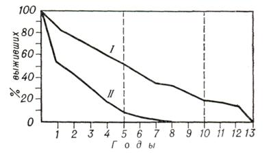 При операциях по поводу разрыва аневризмы аорты чаще всего наступает острая почечная недостаточность вследствие длительной гипотензии с ишемией почек. Осложнения.Во время радикальных операций и в ближайшем послеоперационном периоде наиболее тяжелые осложнения — кровотечение, падение артериального давления после включения в кровоток протеза, шок, сердечная и почечная недостаточность, тромбоз протеза и так далее. Общая летальность после резекции неосложненных аневризм варьирует от 10 до 15%, а при осложненных — до 60%. В отдаленном периоде наиболее грозными осложнениями являются образование ложных аневризм по линии анастомозов и их пенетрация в просвет кишечника (при вмешательствах на брюшной аорте) и в просвет пищевода или бронхов (при вмешательстве на грудной аорте). В этих случаях показано повторное хирургическое вмешательство. Успехи, достигнутые в хирургическом лечении аневризм, позволяют сохранить жизнь 70% больных.