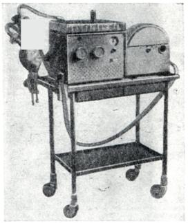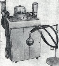 В СССР выпускается более 15 различных моделей аппаратов для искусственного дыхания. Впервые в мире, в частности, осуществляется выпуск аппаратов, автоматически поддерживающих минутную вентиляцию такой величины, которая обеспечивает заданное содержание углекислоты в альвеолярном газе (рис. 15).