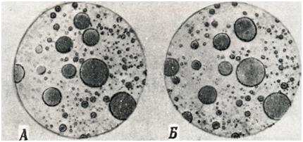 В описываемых нами условиях силы взаимного отталкивания одноименно заряженных частиц могут быть преодолены силами, стремящимися уменьшить поверхностную энергию системы, и частицы, сближаясь, будут образовывать агрегаты. Однако остаточные, хотя и сильно редуцированные, гидратные оболочки частиц все еще будут разделять их и препятствовать полному слиянию. Если указанный процесс будет продолжаться достаточно долго, то наступит флоккуляция и образование коацерватных капель, имеющих макроскопические размеры (фото I). Большая часть растворителя при этом удаляется, а образующиеся коацерватные капли представляют собой концентрированный раствор коллоида. Первоначально стабильная коллоидная система оказывается при этом разделенной на две четко различающиеся фазы, содержащие агрегаты коллоидных частиц различной концентрации.