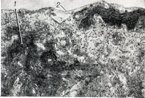 Патологическая анатомия. Цитологическая картина развития афты типична: на стадии пузырька — балонирующая и ретикулярная дистрофия эпителия, на стадии афты — распад и неспецифическое воспаление, дефект эпителия (рис.), некроз ткани, под ним значительная инфильтрация соединительнотканной основы клеточными элементами по ходу сосудов.