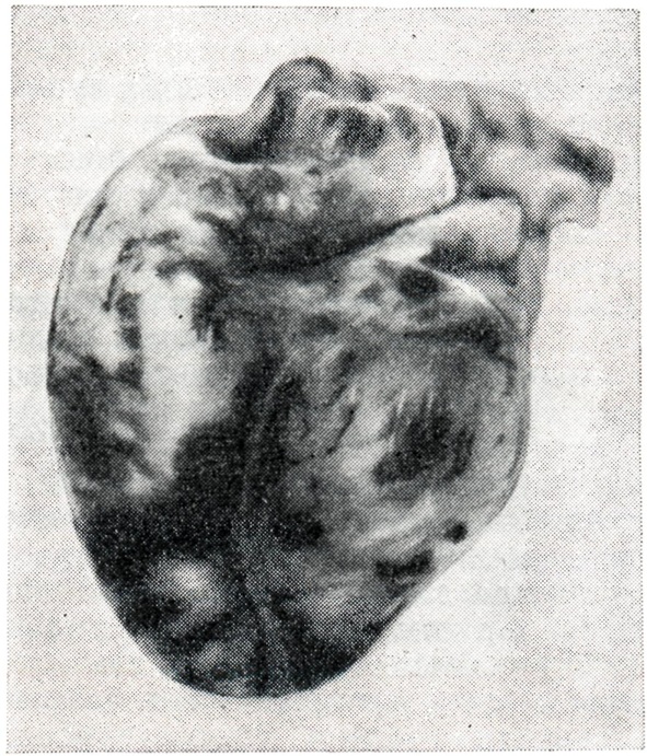 Сосудистые расстройства, обусловливая застой крови и аноксическое состояние тканей, способствуют возникновению внутричерепных кровоизлияний и родовой травмы. Патологическая анатомияПри внутриутробной смерти может наблюдаться желтоватый цвет сыровидной смазки, кожи, ногтей от прокрашивания меконием, который выделяется в околоплодные воды при асфиксии. Иногда обнаруживаются петехиальные кровоизлияния в конъюнктиву и кожу. Редко наблюдается генерализованная анасарка, обычно мало интенсивная. При исследовании внутренних органов плода отмечается общее расстройство кровообращения в виде венозного полнокровия органов, наличие темной жидкой крови, пятнистых кровоизлияний в эпикард (рис. 1), перикард, плевру, легкие, вилочковую железу, слизистую оболочку пищевода, желудка, двенадцатиперстной кишки, брюшину, диафрагму, адвентицию сосудов, под капсулу печени (рис. 2). Внутриутробная асфиксия, как правило, сопровождается аспирацией околоплодных вод и содержимого родовых путей. При массивной аспирации легкие увеличены в объеме, расправленные участки имеют сероватый либо желтоватый цвет и тонут в воде. Гистологически околоплодные воды, бедные белком, не окрашиваются, аспирация подтверждается наличием в бронхах и альвеолах роговых чешуек (рис. 3), комочков мекония, эозинофильных, базофильных шаров, крови, слизи, жира сыровидной смазки, эпителия амниональной оболочки. Такая аспирация постоянно сочетается с разной степенью ателектаза легких, отеком и венозным застоем. Патологические изменения в центнральной нервной системе (отек, микрогеморрагии, кровоизлияния в боковые желудочки, в мягкую мозговую оболочку, дистрофические изменения нервных клеток) и легких (ателектаз, отек, гиалиновые мембраны, аспирированные массы и так далее) являются лишь морфологическим проявлением асфиксии и не должны рассматриваться как основное заболевание; каждое из этих состояний может способствовать гипоксии и вместе с тем является ее следствием. ДиагнозВ акушерской практике целесообразно различать угрожающую асфиксию плода — состояние, когда симптомов асфиксии еще нет, но имеются акушерская ситуация (затяжные роды, аномалии родовой деятельности, перенашивание беременности), заболевания беременной, которые могут привести к возникновению внутриутробной асфиксии; со стороны плода имеются признаки, указывающие на изменение его реактивности. О внутриутробном состоянии плода можно судить по его двигательной активности и сердечной деятельности; последняя наиболее ярко отражает состояние плода. Весьма важно и то обстоятельство, что внутриутробная асфиксия начинается с нарушения сердечной деятельности плода, которое проявляется в изменениях частоты, ритма, звучности сердечных тонов. Частота сердцебиений плода в конце беременности и в первом периоде родов в норме колеблется от 120 до 160 ударов в минуту, при этом преходящие изменения частоты в пределах указанных границ особого практического значения не имеют. Ряд патологических состояний во время беременности (токсикозы, перенашивание, резус-конфликт, сахарный диабет и прочее) сопровождается изменениями плаценты, приводящими к нарушению плацентарного кровообращения и хронической гипоксии плода. Однако благодаря компенсаторным механизмам у плода не обнаруживаются спонтанные изменени