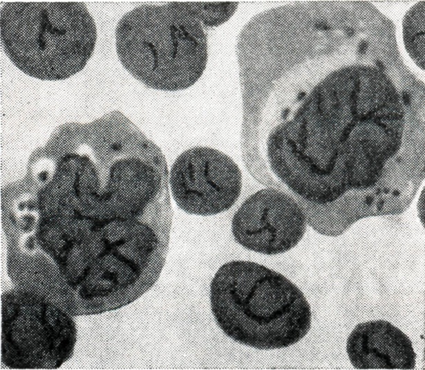 Патогенез и патологическая анатомия. Бартонеллы при укусе человека москитом попадают в кровяное русло и при развитии заболевания обнаруживаются в эритроцитах и клетках ретикулоэндотелиальной системы (рис. 1), печени, селезенки, лимф. узлов, костного мозга и кожи, вызывая тяжелую макроцитарную анемию гипохромного характера. Развивается длительная лихорадка с общетоксическими проявлениями. На вскрытии — резкая анемия, иногда кровоизлияния в коже и слизистых оболочках, гиперплазия костного мозга, набухание печени и лимф, узлов, очаги некроза со скоплениями возбудителя и фагоцитированных эритроцитов. В печени скопления гемосидерина; в ней, как и в селезенке, обнаруживаются мелкие очаги некроза. В стадии verruga peruana на коже лица и конечностей, реже на слизистых оболочках и во внутренних органах появляются узлы цвета спелой вишни. Кожные проявления исчезают спустя 2—3 мес, иногда некротизируются или нагнаиваются. При хрон. течении на месте узлов наблюдается разрастание соединительной ткани, образование ангиоэндотелиом в коже и подкожной клетчатке. В местах патологически измененной ткани удается обнаруживать возбудителя болезни.
